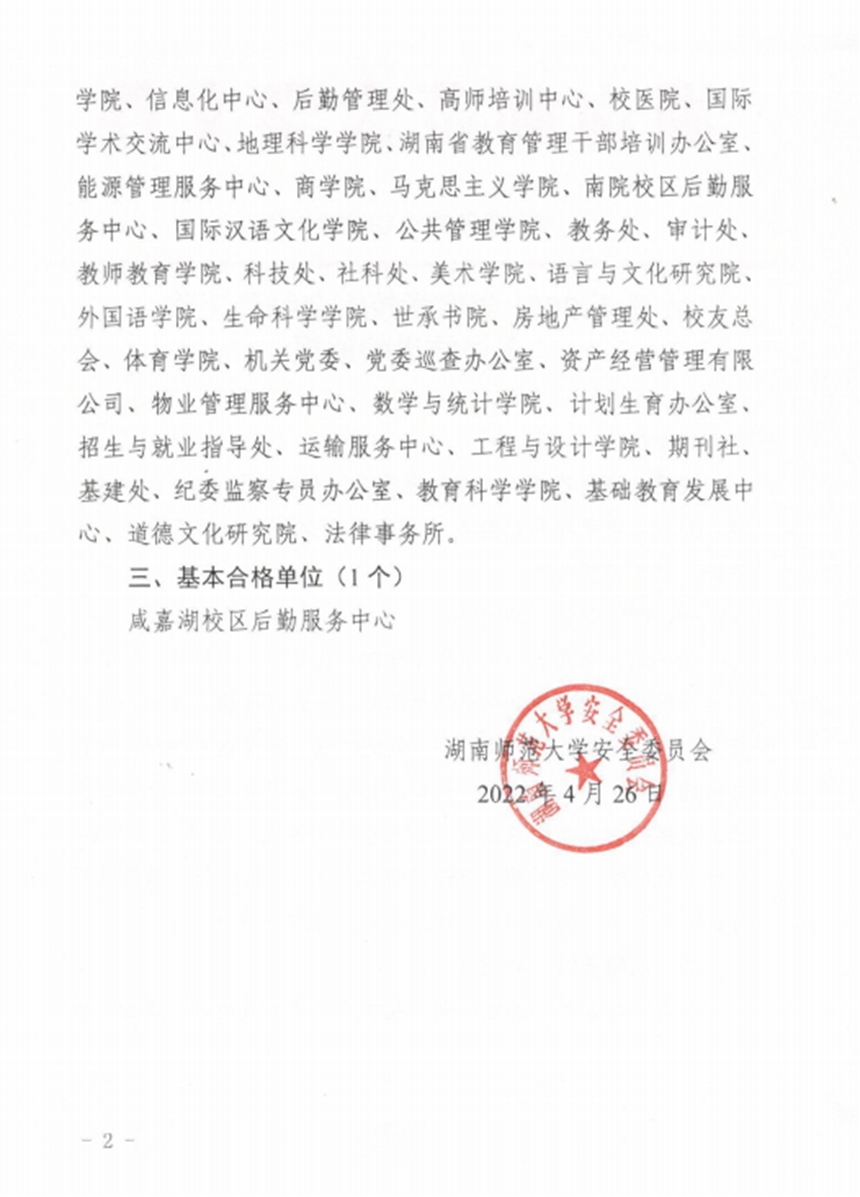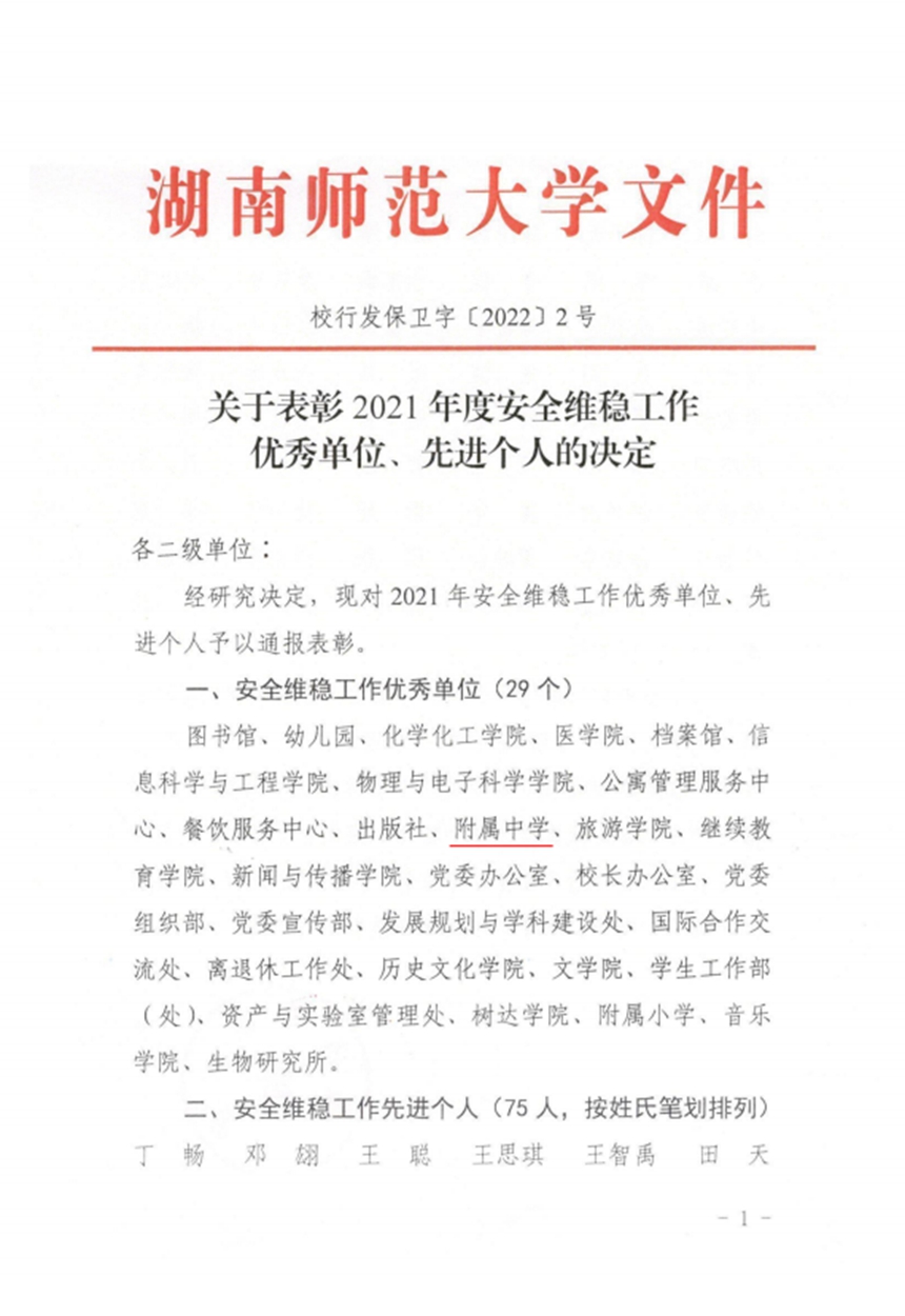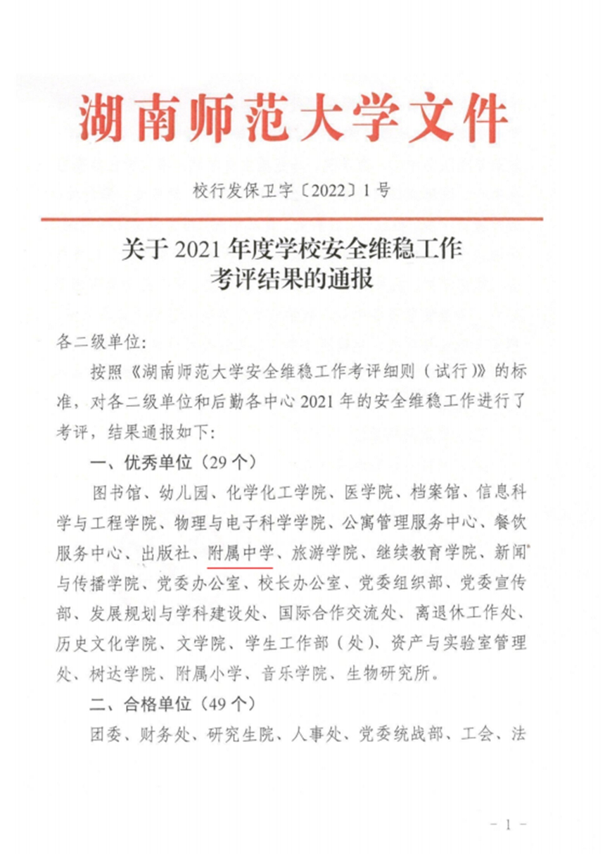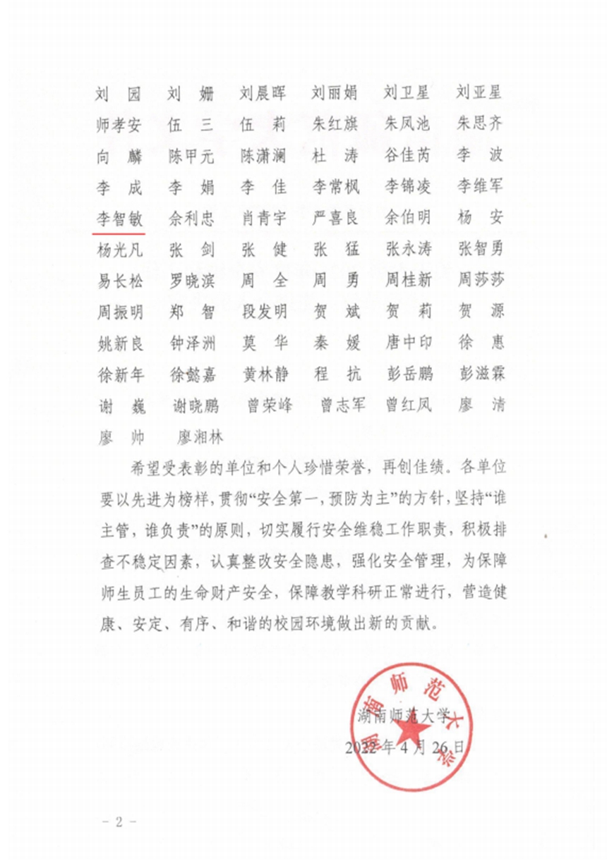 我校被评为湖南师范大学2021年度安全维稳工作优秀单位