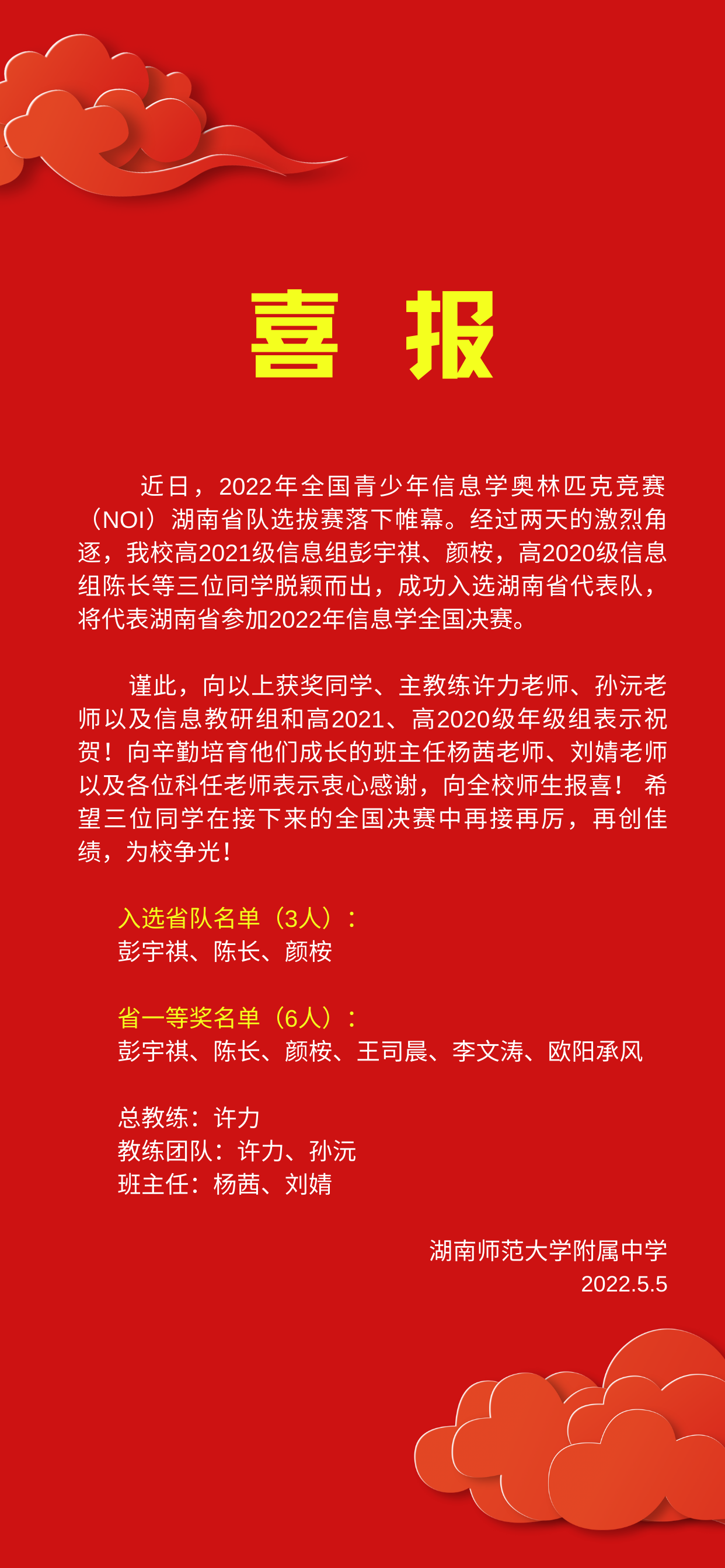 喜报:我校信息竞赛组3人入选省代表队