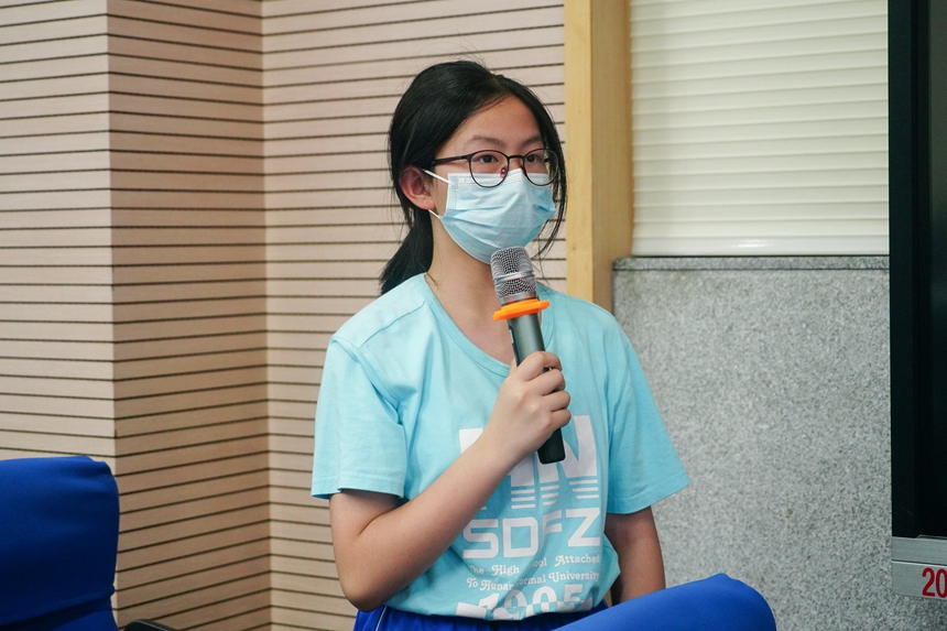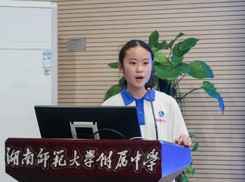 七年级学生代表进行了《海底两万里》和《骆驼祥子》的阅读分享。两位学生代表所做的阅读分享,有浅有深,既有对整本书的归纳总结,又有对整本书阅读的独到而深入的思考探究。