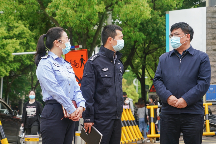 我校党委副书记彭荣宏、副校长陈迪勋陪同。刘志敏一行先后实地调研了学校校门、保卫处、监控室,详细了解了学校校门管控、疫情防控、校园突发事件应急处置、警校联动维护校园安全等情况。陈迪勋介绍了学校校园建设、安全管理和疫情防控等情况;重点介绍了南门、西门的人脸识别系统、车辆自动识别系统、校园视频监控等安全设备设施及安保队伍人员配备到位,实现了“人防、物防、技防”三防联动,切实保障全校师生安全。