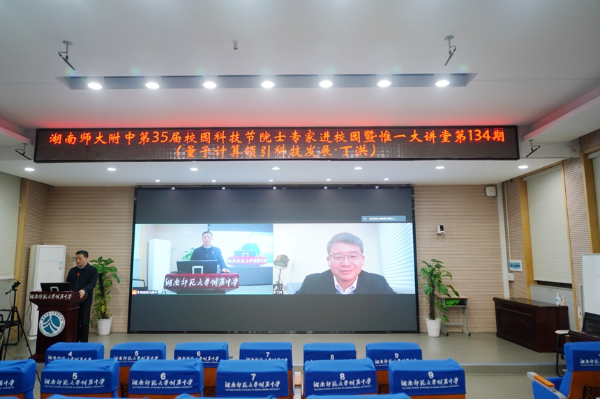 丁洪深情回忆了在母校的美好时光。在主题为《量子计算领引科技发展》的报告中,他告诉同学们,一般计算机用上亿年才能解决的难题,量子计算机只需数分钟便可解决,随着制造工艺不断逼近物理极限,摩尔定律逐渐失效,量子计算的出现可以巧妙地解决计算机发展的瓶颈问题。丁洪结合多年的研究经历和未来的研究计划,指出量子计算机大概率会成为第四次工业革命的引擎之一,谁能找到更好的量子材料,构建更好的量子器件,建造更好的量子计算机,谁就能在这场革命中占得先机。