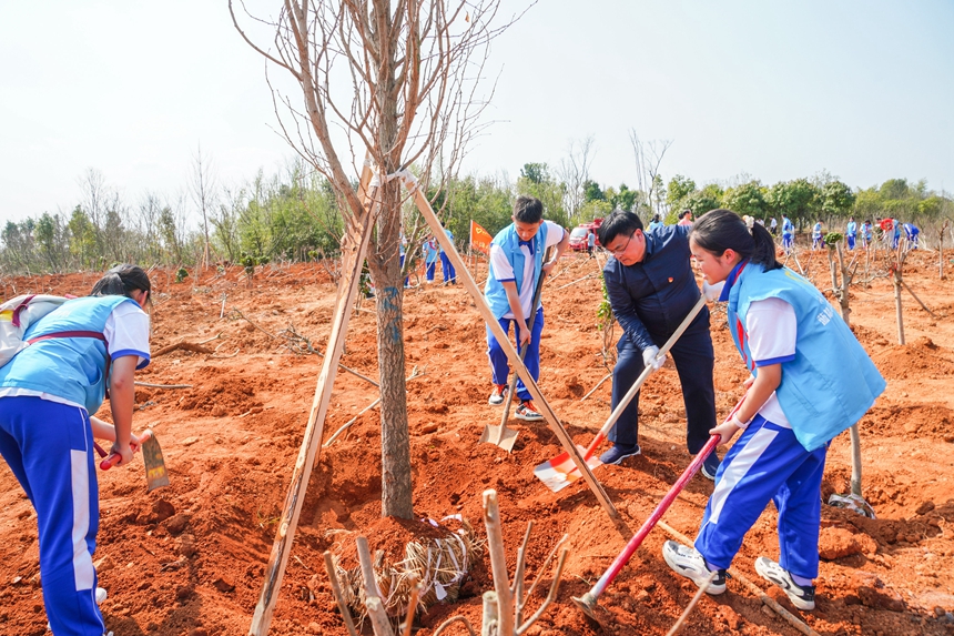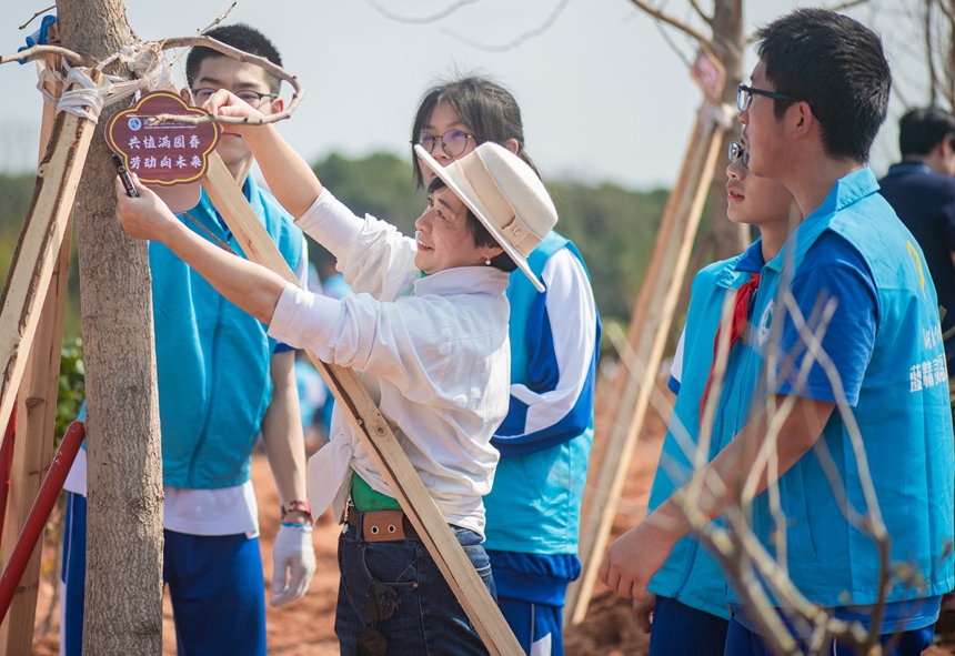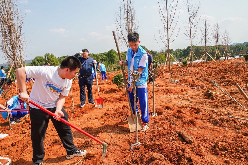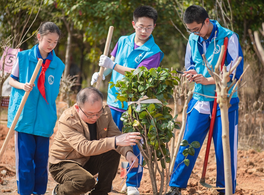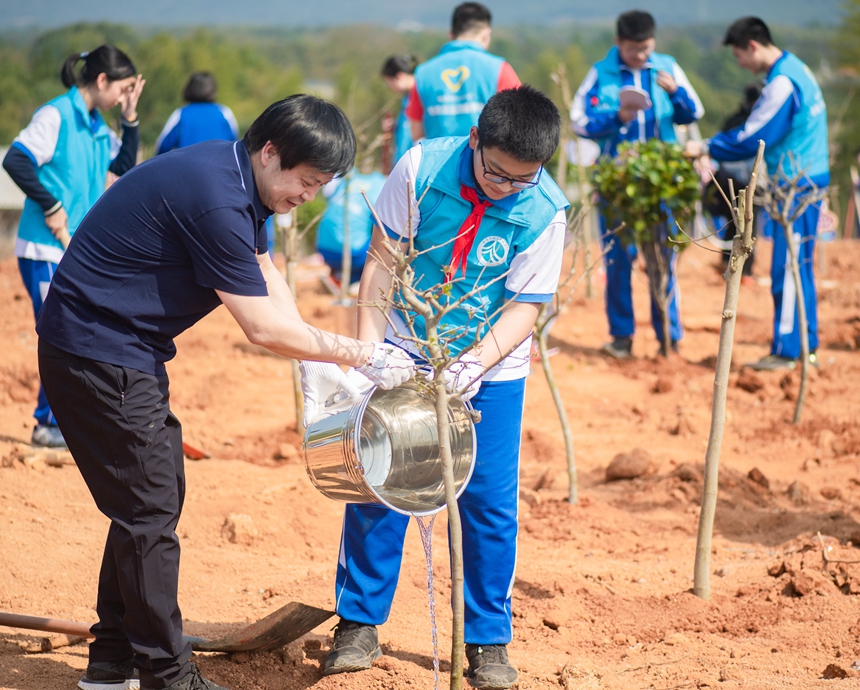 校长谢永红介绍:“多年来,学校认真落实‘立德树人’根本任务,结合学校教育教学实际,主动开展中学生义务植树等生态文明教育和劳动教育活动,在实践中培养学生的劳动精神,树立绿色发展理念。”