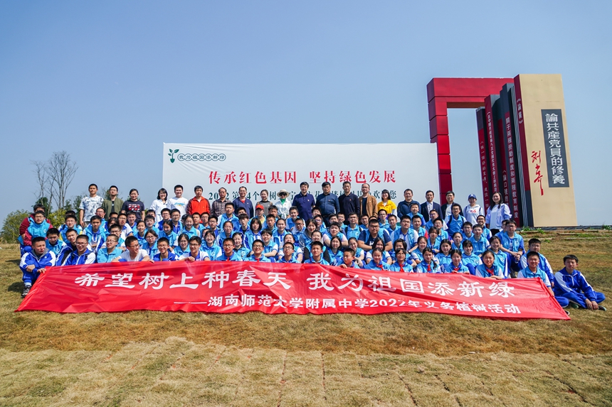 为加强新时代中学劳动教育,让学生在自然中观察、学习和体验劳动的乐趣,3月11日,全体在家校领导,中层干部,教师、团员、少先队员和“青马班”学员代表共百余名师生前往宁乡花明楼植树基地开展“共植满园春·劳动向未来”义务植树暨劳动教育实践活动。
