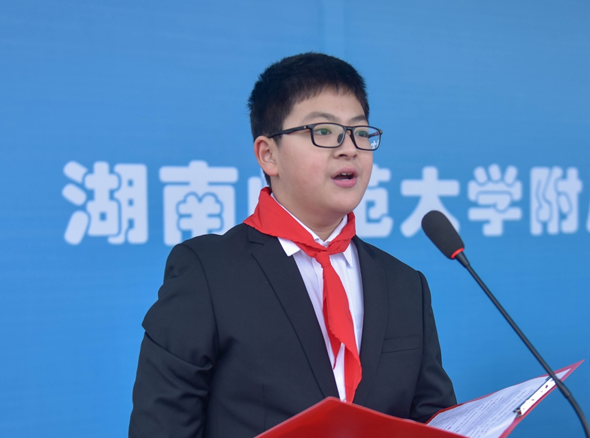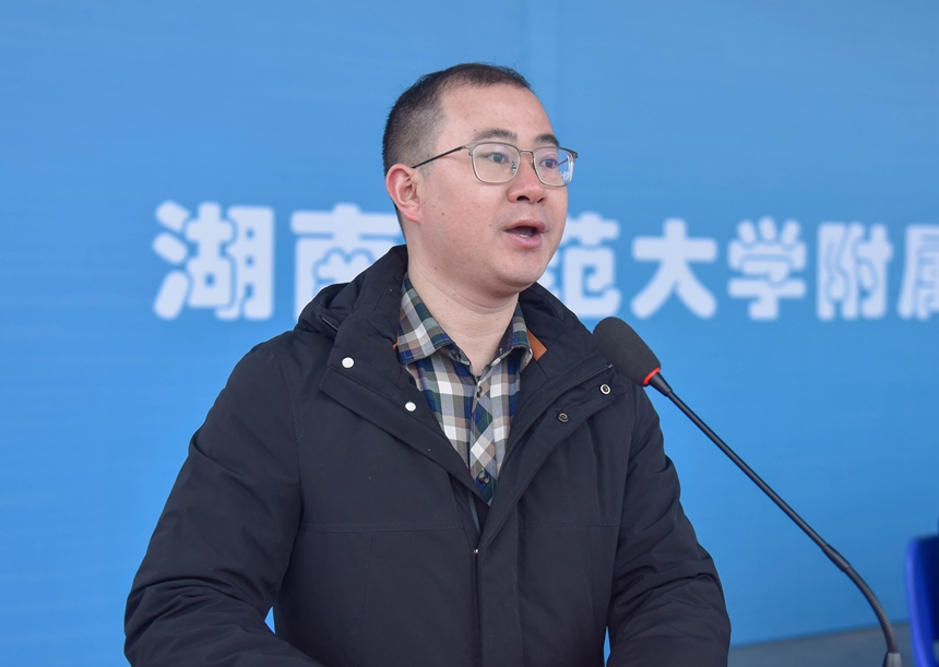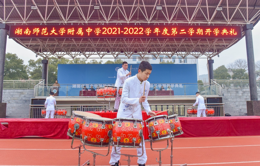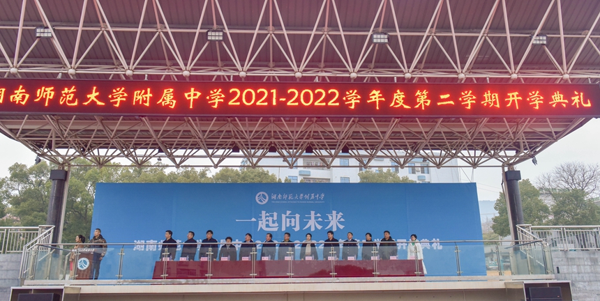 2月14日清晨,我校2021——2022学年度第二学期开学典礼在校体育运动中心田径场隆重举行。湖南师范大学副校长唐贤清,基础教育发展中心主任龚民、副主任周熠;岳麓区人民政府副区长李群素;岳麓区公安分局政委、我校法治副校长刘志敏;桔子洲街道学堂坡社区党总支书记余海艳;校家长委员会主任佘剑波;我校校长谢永红,党委书记黄月初,副校长陈迪勋,纪检书记李春莲,副校长苏建祥、国家万人计划教学名师肖鹏飞出席开学典礼。团委副书记温宇主持典礼。