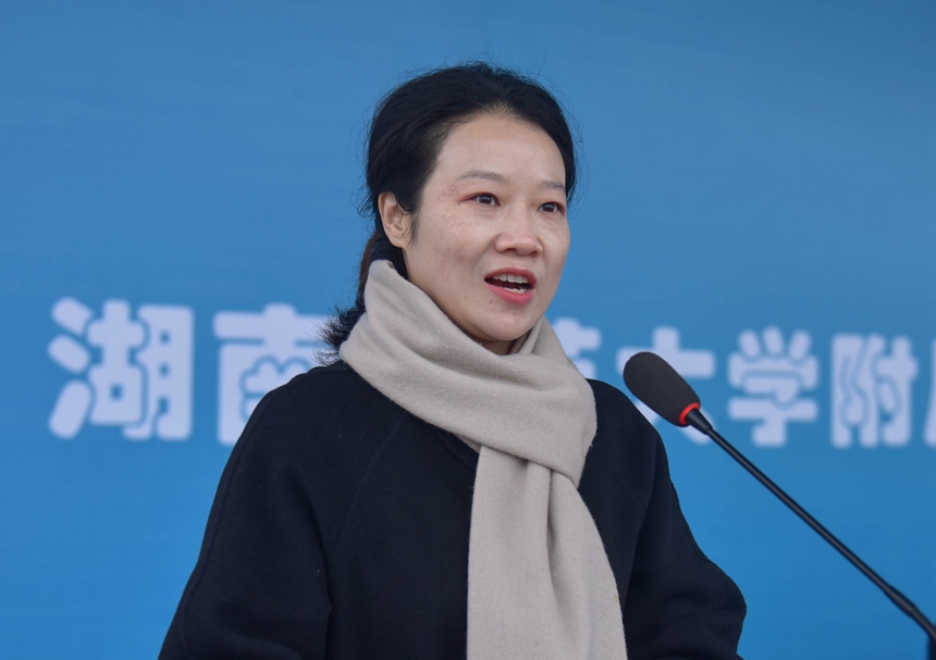 李群素发表讲话,她评价附中是岳麓教育的一张闪亮名片,希望老师牢记为党育人、为国育才使命,学生树立梦想从学习开始、事业靠本领成就的理念,全校师生上下一心让学校教育的新发展为岳麓经济社会的大发展争光添彩。