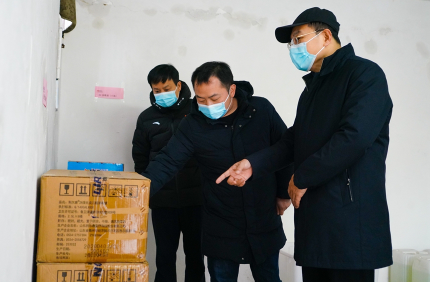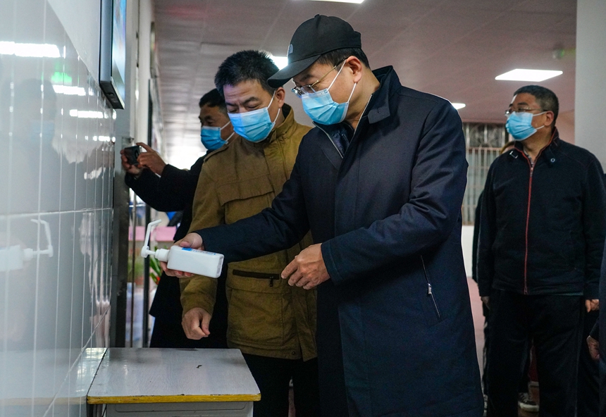 督查组一行先后深入学校门卫室、医务室、教室、食堂、防疫物资仓库等场所,现场察看应急处置设施、师生用餐防控、防疫物资储备、应急处置设施等情况,听取相关部门负责人关于消毒、值守、后勤保障等工作的情况介绍。侯振刚对学校疫情防控工作给予了充分的肯定,认为我校疫情防控工作思想重视、宣传到位、措施有力、效果显著。