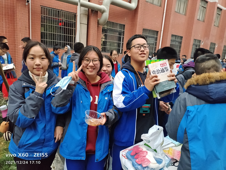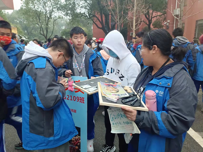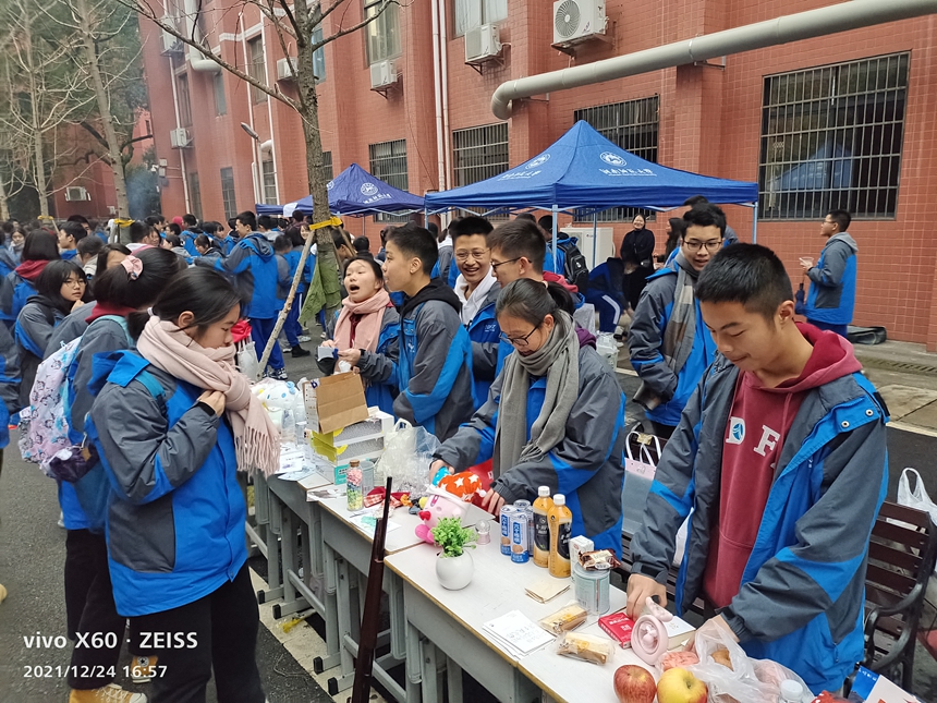 12月25日,为了增强中学生奉献服务精神,我校八年级、高一、高二年级两千余名学生志愿者以班级为单位组成数十个爱心小分队,在校园内设置摊位,开展爱心义卖活动。