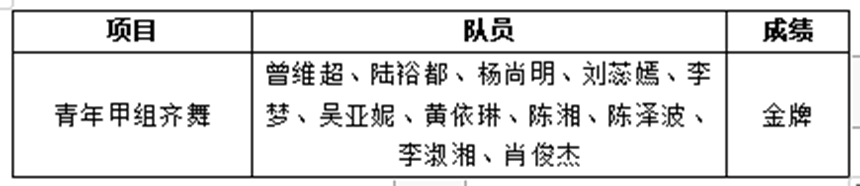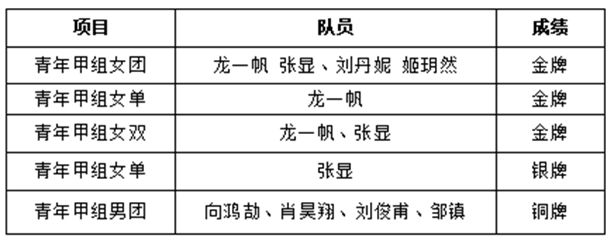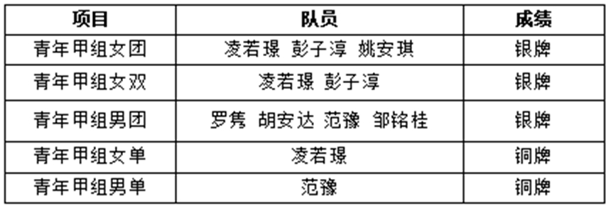在长沙市第十届运动会中,我校派出羽毛球队、田径队、街舞队、乒乓球队、足球队参加比赛,共获得5金5银4铜。足球队获得第五名。 羽毛球队:3金1银1铜 田径队:1金1银1铜 街舞队:1金 乒乓球队:3银2铜 (来源:德育与学生发展处)
