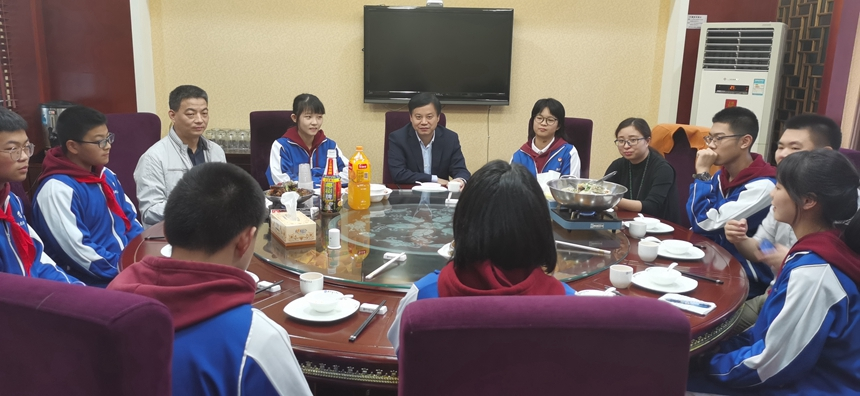 午餐会过程中,谢永红以一位“大朋友”的身份,和同学们分享自身成长感悟以及往届学生干部的成长故事,勉励同学们对标优秀校友,树立远大目标,脚踏实地做事;寻找正确方法,提高学习效率,充分发挥特长;主动担当责任,不断攻坚克难,努力奋勇争先。