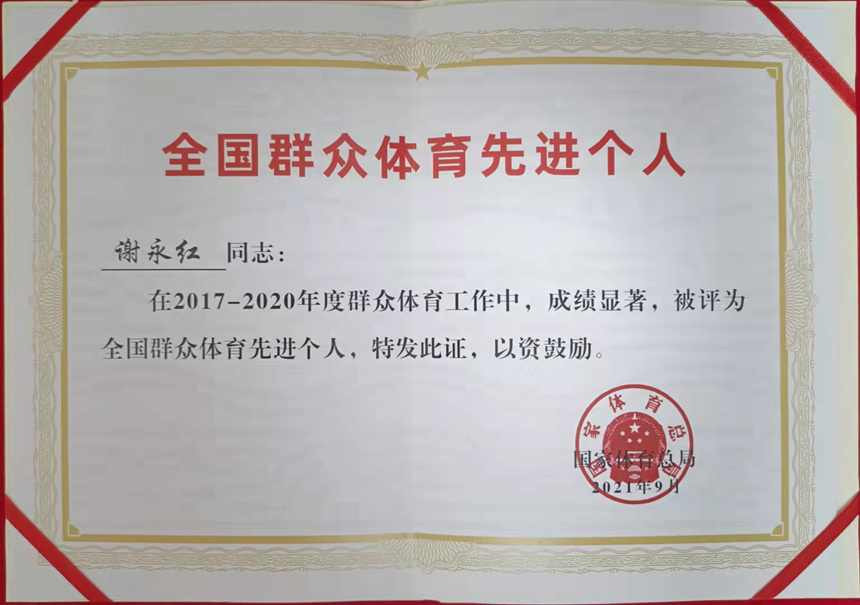 谢永红荣获全国群众体育先进个人受到习近平总书记接见