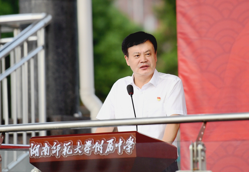 同学们,在你们身边就有一大批这样的优秀学子,今天开学典礼上将要发言的刘鸿睿学长就是其中的代表。他早早树立了做一名优秀新闻人的人生梦想,高一加入了校园电视台,不久还干起了副台长,跟团队伙伴一道研究制作了不少新闻作品;高二他当选为校团委副书记,负责学生宣传工作,参与组织了许多大型的新闻实践活动;高三毕业,他光荣评选为湖南省优秀学生干部,并以优异的成绩考上了心仪已久的中国人民大学新闻系。在实践中研究,在研究中实践,你们的学长刘鸿睿校友做出了很好的示范。今天站在高三队伍里的杨宜同学,同样是大家学习的榜样。他刚刚摘得国际中学生地理奥林匹克竞赛银牌。可别小看这枚银牌,它实现了湖南学子该项赛事奖牌零的突破。尽管地理奥赛不像传统五大学科竞赛那样可以获得大学保送资格或享受其他优惠政策,但他始终坚守本心,从未放弃对地理学科的浓厚兴趣。在接受媒体采访时,他介绍说从小就很喜欢地理,看了大量的地理类绘本、书籍,还特别喜欢画地图,画的第一幅地图是长沙城区图。他还特别提到了附中的学科兴趣特长班,感谢指导老师向他提供了包括专业知识储备和野外考察能力训练在内的针对性辅导。从刘鸿睿学长、杨宜同学身上可以看出他们对梦想的执着以及为之矢志不渝、不懈努力的精神品质。尊重学生兴趣选择,持续激发学生创新精神、研究意识和实践能力,全方位助力拔尖创新人才成长,是附中一贯坚持的育人目标。