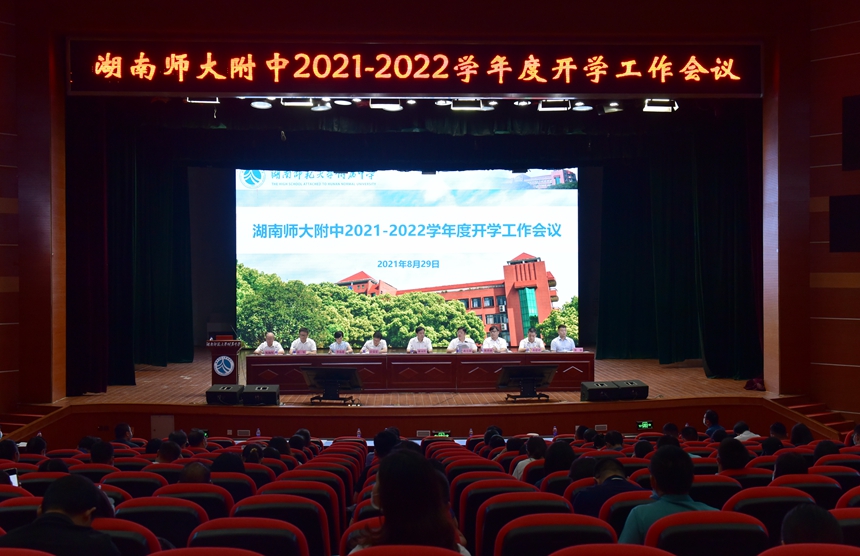 8月29日,我校2021-2022学年度开学工作会议在学生活动中心大礼堂召开,全体教职工和长沙市内集团校校领导参加。校长谢永红,党委书记黄月初,党委副书记彭荣宏,副校长陈迪勋,纪检书记李春莲,副校长苏建祥,挂职副校长杜军,党委委员廖强、陈胸怀出席会议并在主席台就座。黄月初主持会议。