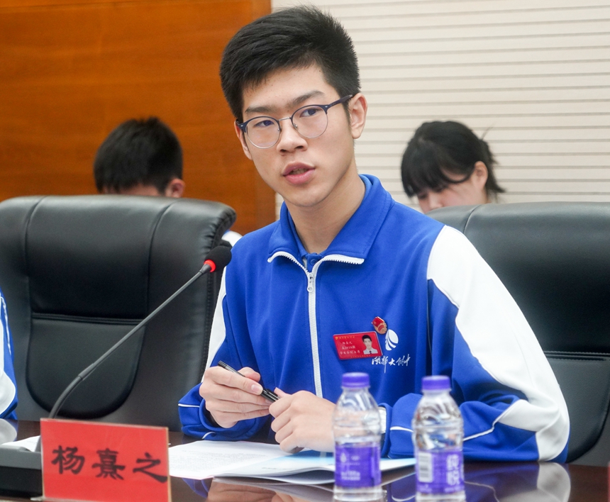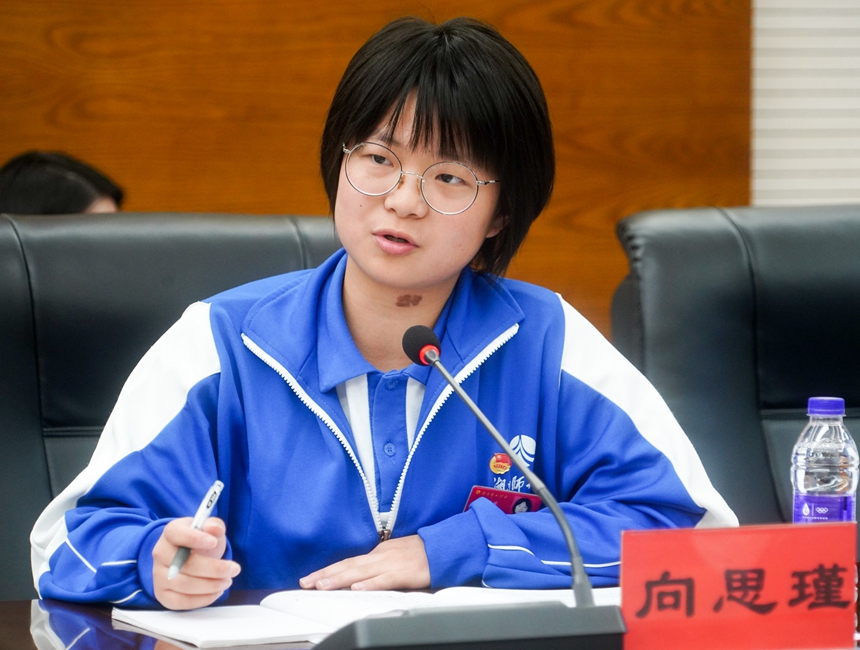 首先,学生会权益部部长作《对学校“十四·五”规划建言献策的总体报告》,汇报了近半年来学生干部通过多种渠道、多种形式收集到的学生对学校“十四·五”规划的建议。