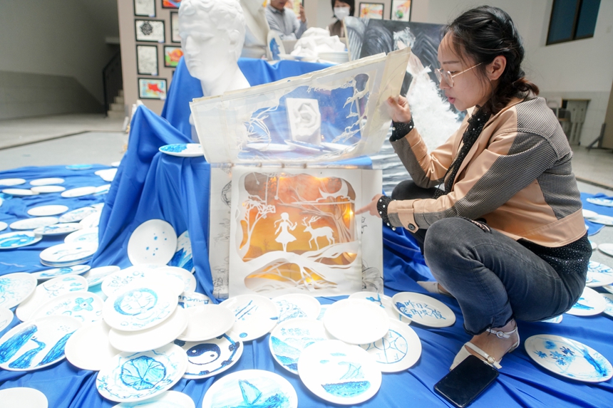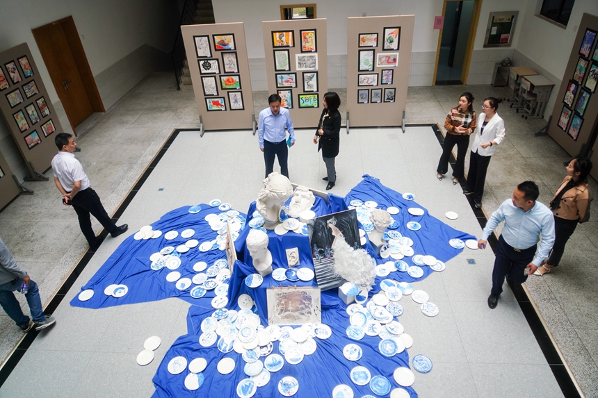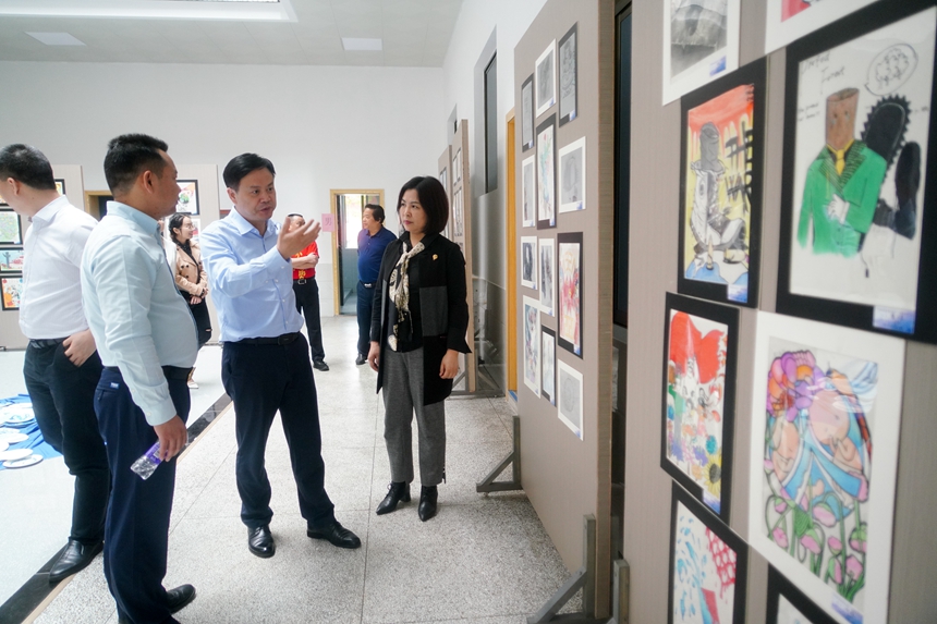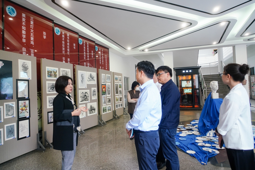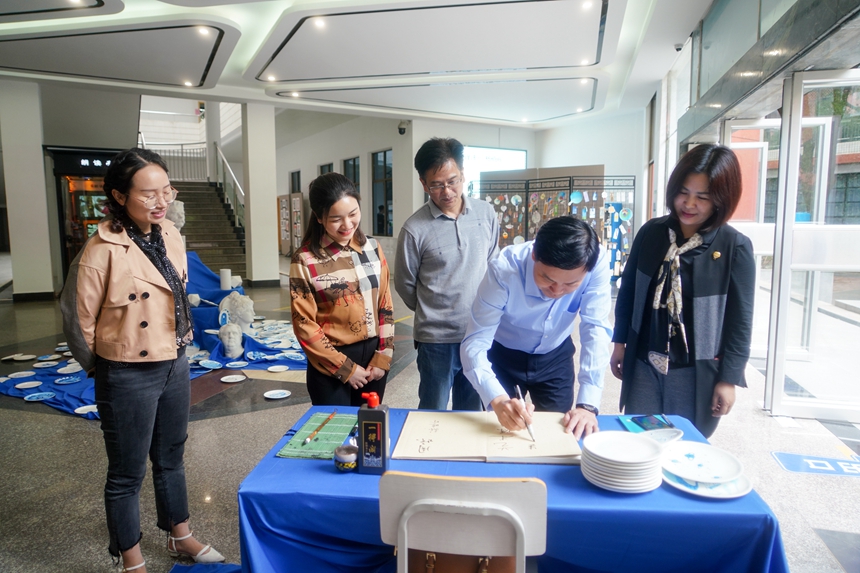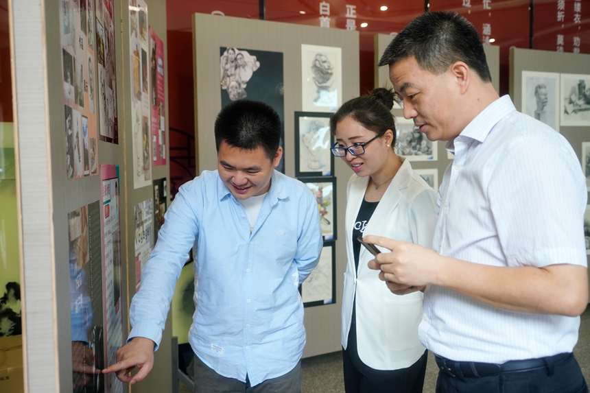 画展中,谢永红对学生的作品点赞点评,并隆重题字“艺术源于生活,生活创造艺术”。他鼓励美术教师要不断跟进时代发展,在教书育人、立德树人中发掘学生才能,发挥美术育人特色,引导学生不断发现美、创造美、传播美。