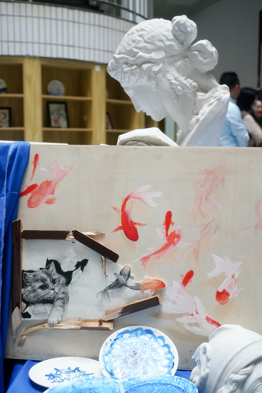 本次画展同时也展出了我校美术专业生的常规训练作品及创作作品20余幅,孩子们的作品表现出的创意和体现出的功底得到了师生的一致好评和赞赏!