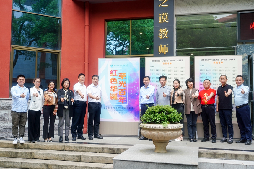 春夏之交,生机盎然。5月17日上午,经过近两个多月的酝酿筹备,庆祝中国共产党成立100周年“红色华诞 荣光百年”湖南师大附中学生画展在图书馆一楼大厅顺利开展,校长谢永红,副校长陈迪勋、苏建祥等出席了本次画展的开幕仪式。
