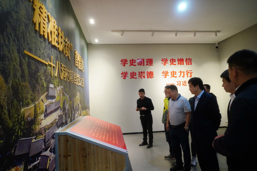 在十八洞村,党员们参观了精准扶贫展厅,认真听取了十八洞村的发展历程和支部党建工作、精准扶贫举措等经验,全面了解了习近平总书记在十八洞村首次提出的“实事求是、因地制宜、分类指导、精准扶贫”的重要论述。随后,大家沿着习近平总书记在十八洞村考察的路线,一边参观一边感受,一边学习一边交流,全方位地感受精准扶贫政策给十八洞村带来的巨大变化。