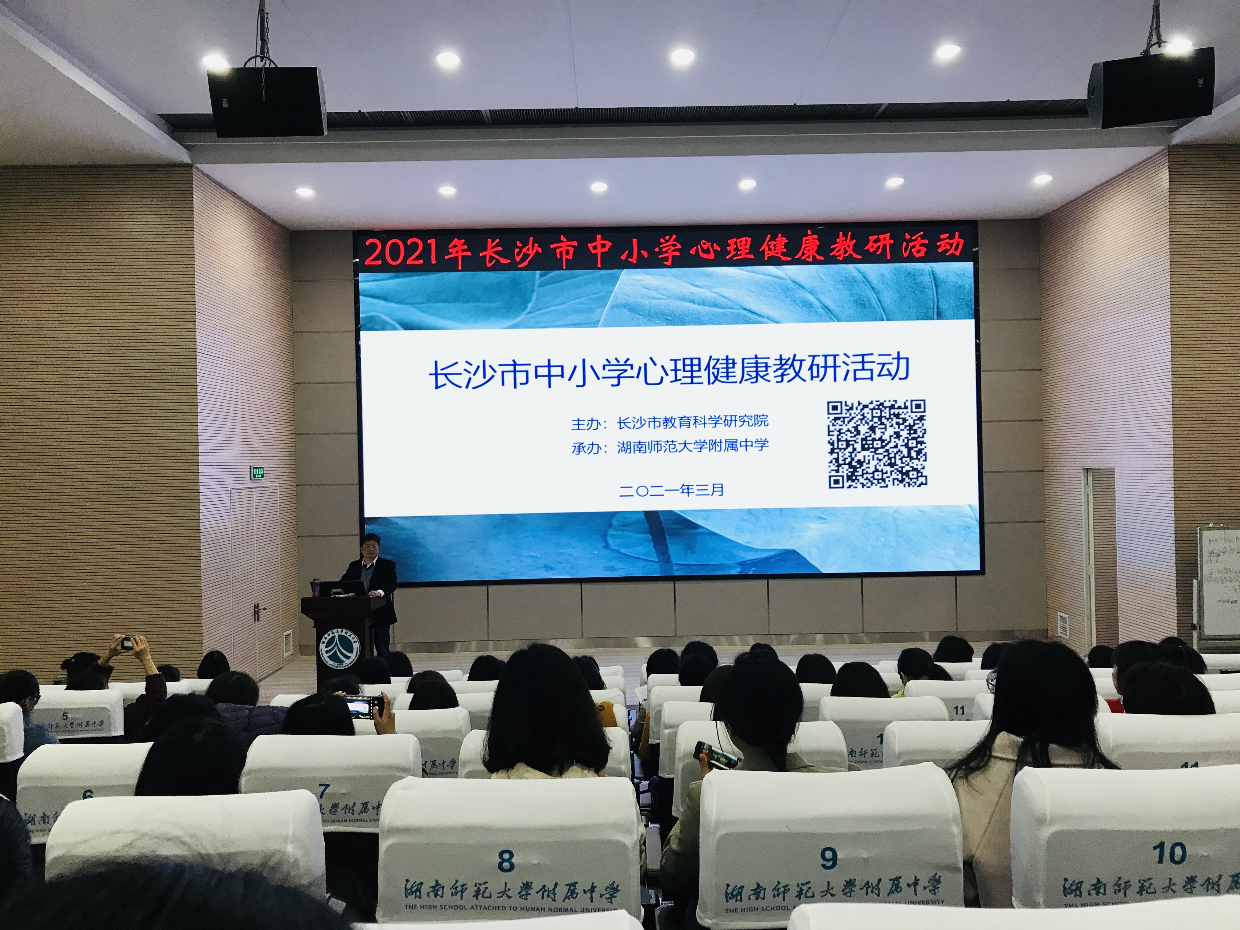 3月31日上午,长沙市中小学心理健康教研活动在我校会议厅举行。党委书记黄月初,督导室主任左小青,德育与学生发展处主任吴卿,课程与教学处主任黄宇鸿出席。长沙市教科院心理教研员梁珊与长沙市中小学心理健康教育老师以及我校心理组全体老师近400人参加了此次活动。