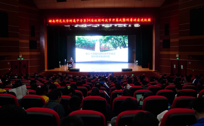 随后,彭荣宏宣布湖南师大附中第34届校园科技节开幕。