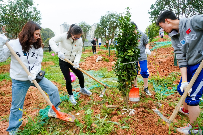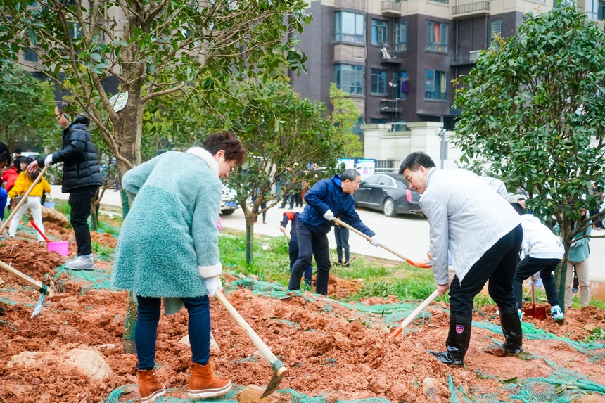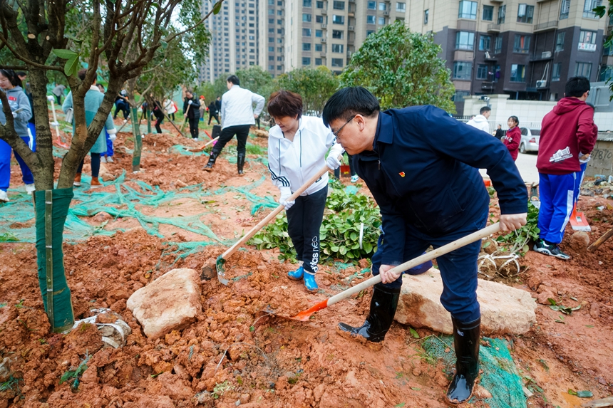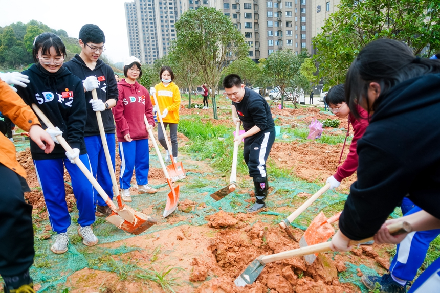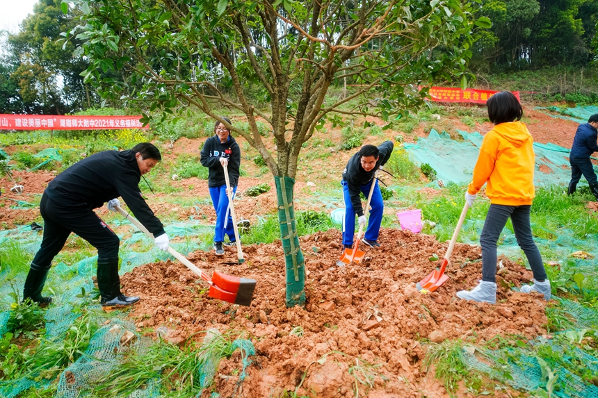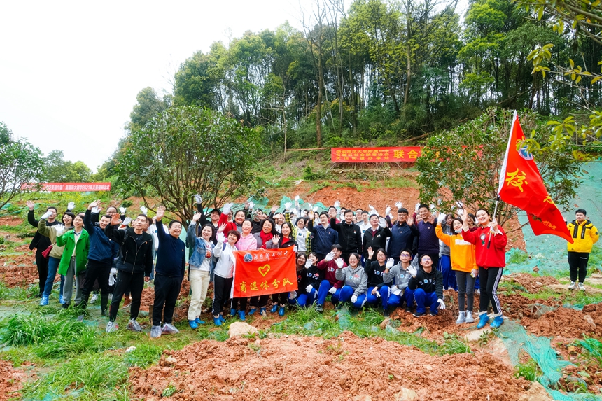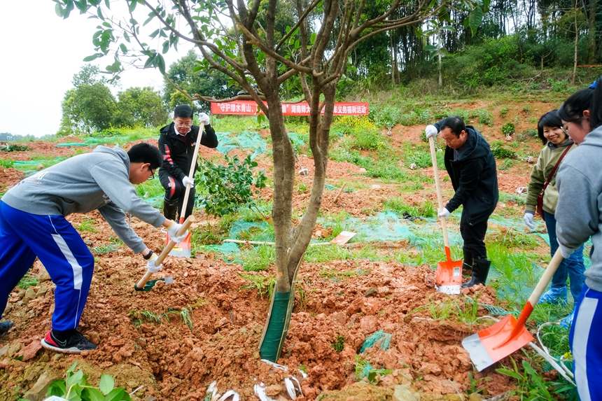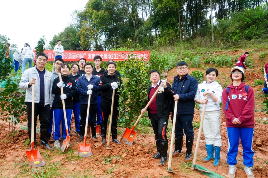 阳春三月,大地回春,草木生长,绿意葱茏。3月23日下午,我校百余名师生与岳麓区社会禁毒协会、岳麓区天顶街道干部群众一起来到尖山社区,开展“守护绿水青山,建设美丽中国”义务植树活动,为这里的公共用地植新绿,育新苗。