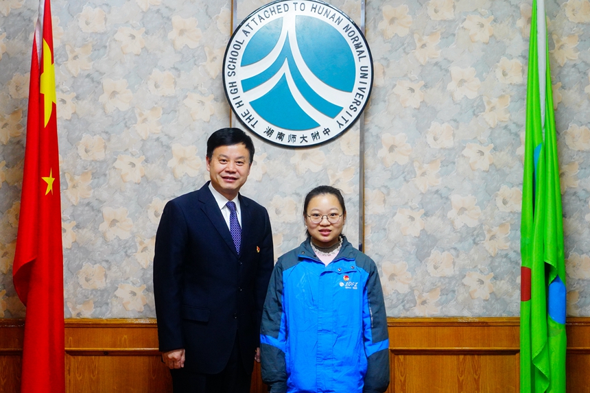 3月1日,校长谢永红专门邀请获得2020年长沙市“新时代好少年”的戴宜珊同学来到会议室,与她进行亲切座谈。
