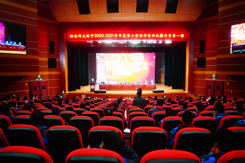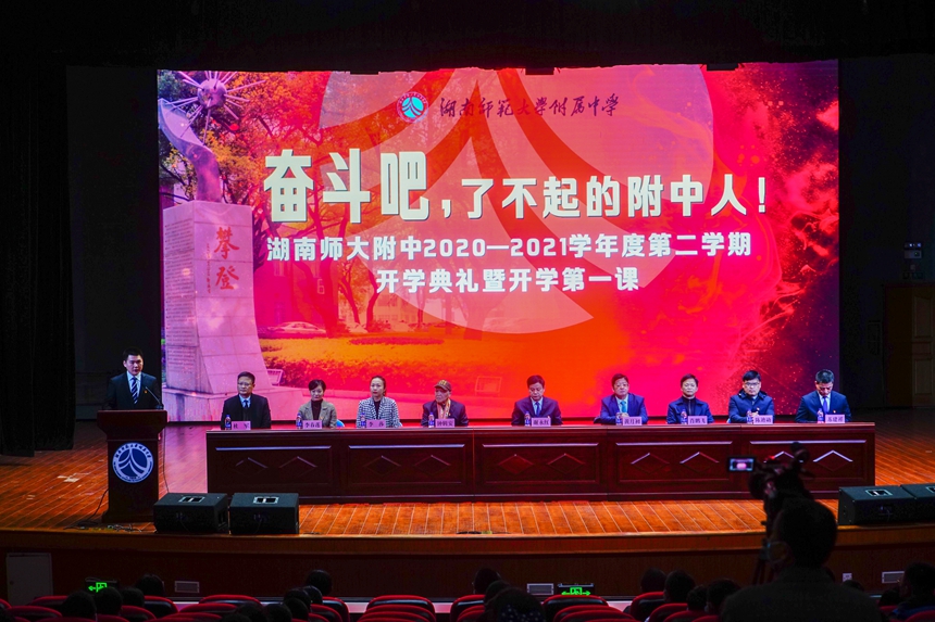 3月1日早晨,我校2021年春季开学典礼暨开学第一课在学生活动中心隆重举行。本次的主题是“奋斗吧,了不起的附中人”。全校学生、教职员工在主会场、各班教室参加和观看典礼。