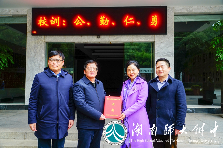 首先,张晓梅、曹攀颁发了我校“继续保留全国文明校园荣誉称号”的证书,黄月初、陈迪勋代表学校接受了证书。调研组一行实地查看了校园文化布置与心理健康教育活动开展情况,与校领导交流了关于未成年人思想道德建设与文明校园创建情况。