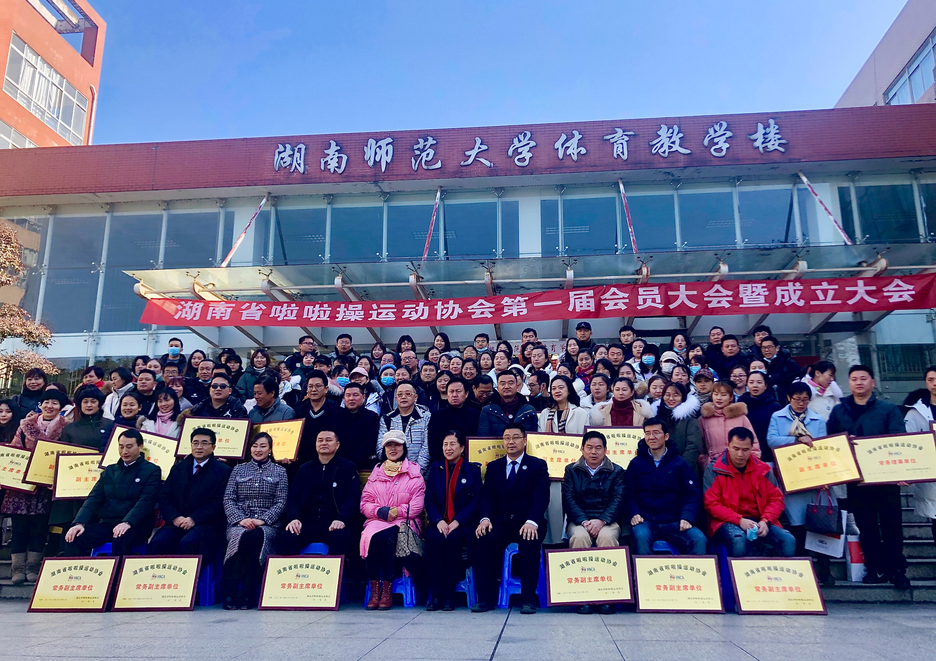 1月8日上午,在湖南省民政厅、湖南省教育厅、湖南省体育局各领导及各会员单位领导的见证下,湖南省啦啦操运动协会第一届会员大会暨成立大会于在湖南师范大学体育学院成功举行。在湖南省200多个会员单位中,我校当选为湖南省啦啦操运动协会副主席单位,谭伟老师当选为湖南省啦啦操运动协会副主席。