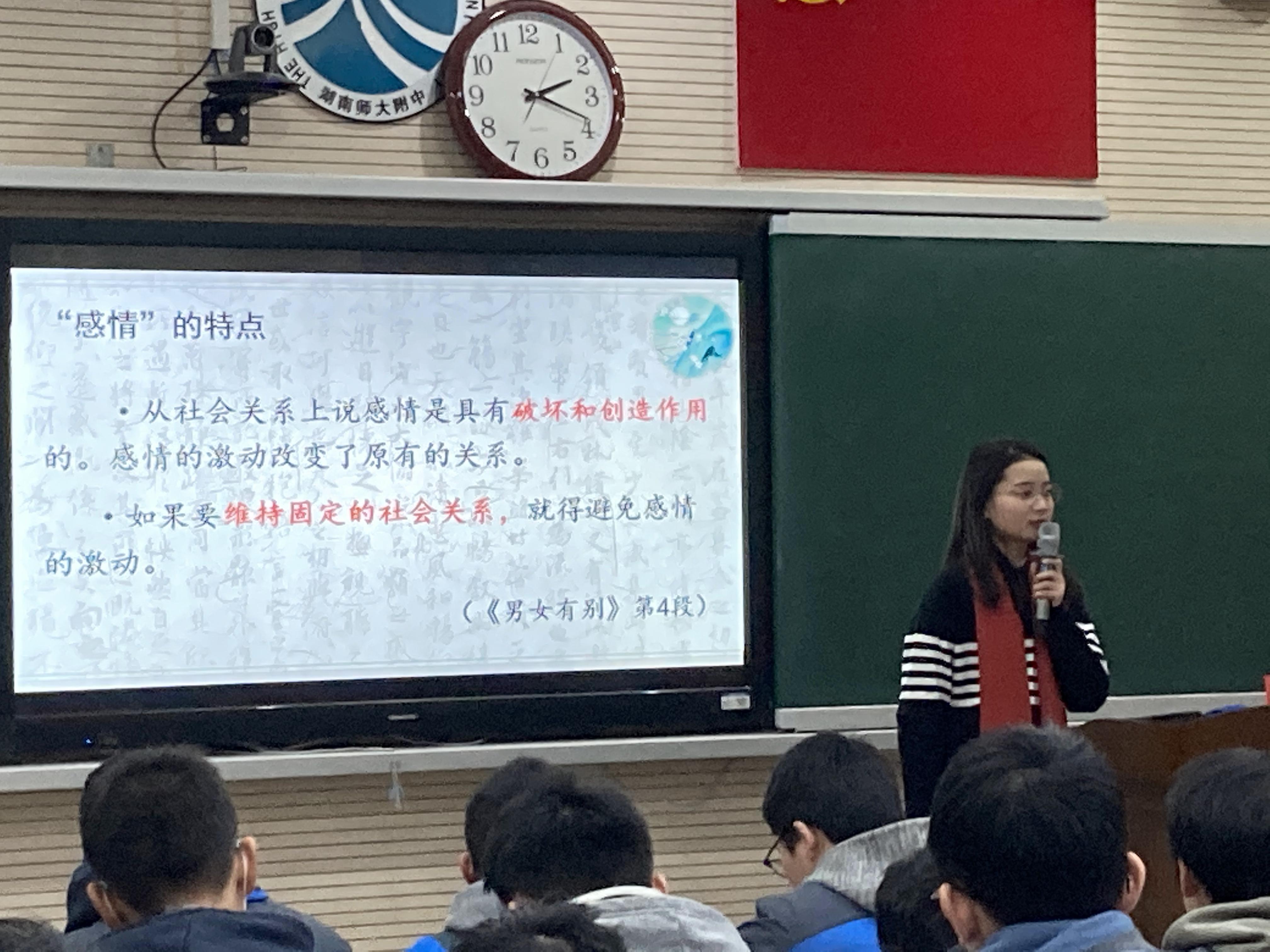 1月7日下午,长沙市蒋雁鸣中学语文名师工作室在我校开展高中语文整本书阅读课堂教学实践研究活动。工作室成员和我校语文教师积极参与活动,语文教研组长欧阳荐枫老师热情主持活动。活动中,我校苏建祥副校长致辞,热烈欢迎蒋雁鸣老师及兄弟学校各位语文名师莅临指导工作,我校刘倩老师、李小军老师分别带来了《乡土中国》整本书阅读研讨课、展示课,课后工作室名师、学员对两堂课例进行了充分研讨,最后蒋雁鸣老师为全体与会教师作了《高中整本书阅读教学策略探究》微讲座。