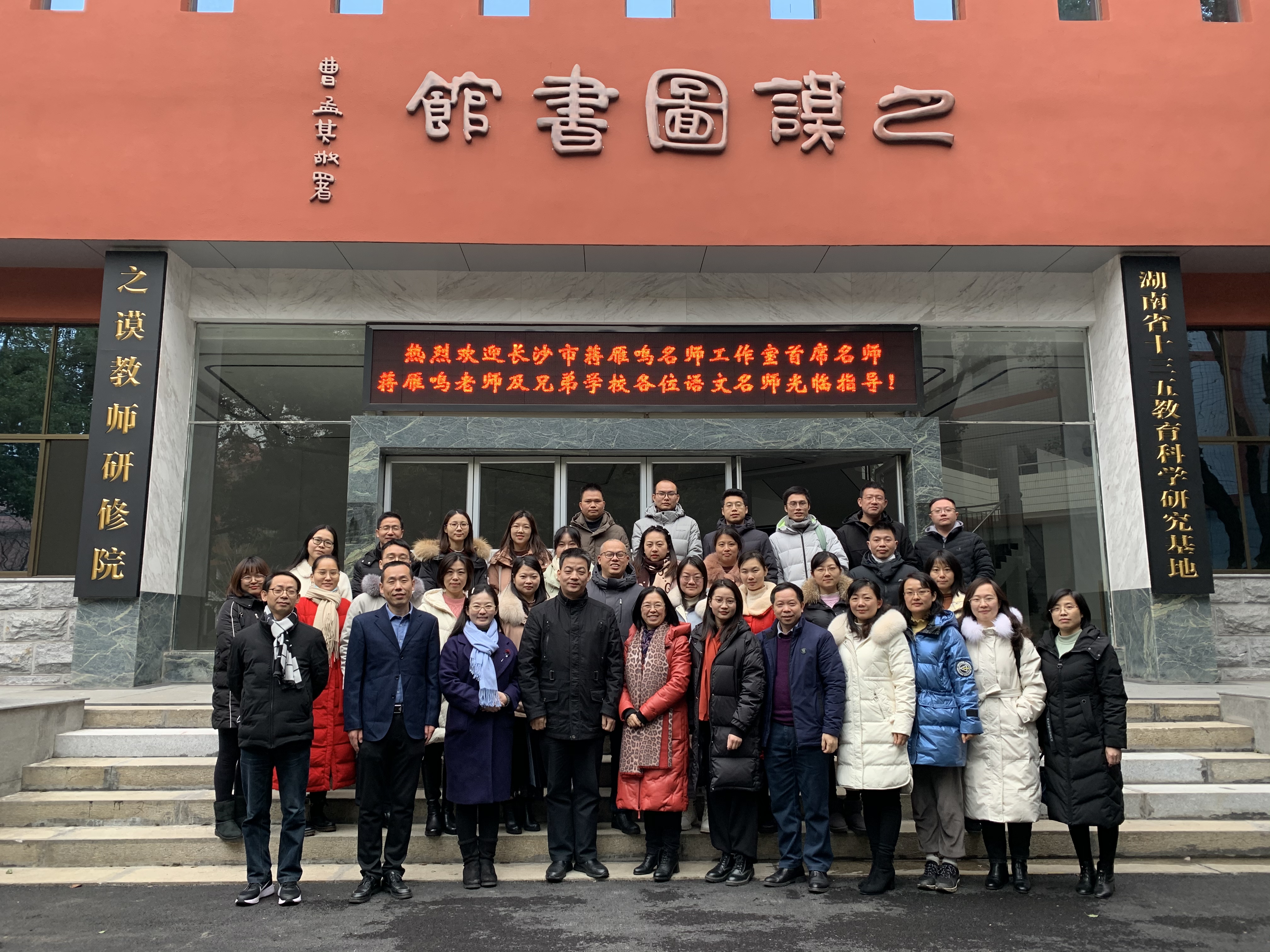活动结束后,工作室学员和湖南师大附中语文教师移步之谟图书馆前坪合影留念,完成了一场充实的教研之旅。