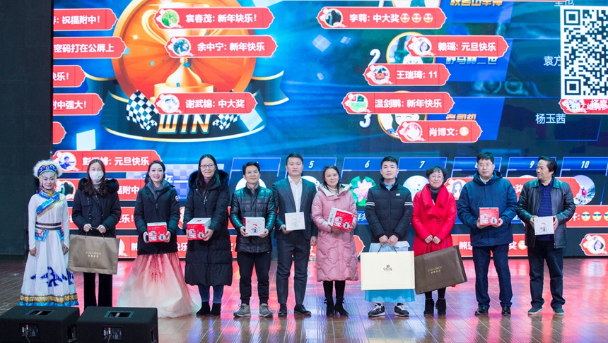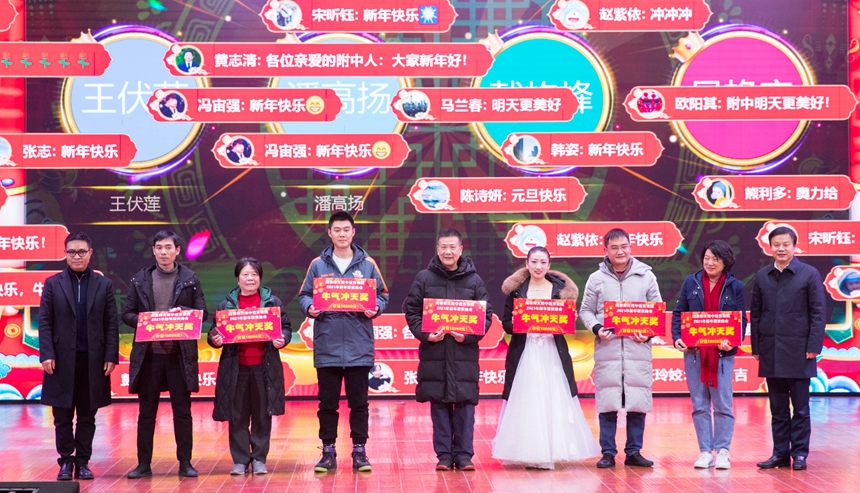 首先,谢永红致辞。他代表学校向湖南师大附中教育集团全体教职工表达了新年的问候和真挚的祝福。回首2020年,他感谢全体教职工的共同努力,并向大家通报了本年度附中人闯出的新天地、干出的新成绩:启动和开展迎接建党100周年系列活动、众志成城抗击新冠肺炎疫情、学校喜获多项殊荣、拔尖创新人才培养成绩喜人、学校恢复初中办学、研究型高中建设取得重大成果、圆满完成脱贫攻坚任务、合作办学取得新进展、众多师生获得重要荣誉和表彰、学条件和校园环境持续改善优化等十件大事。展望2021年,他期待大家同心同德,善作善成,奋力谱写附中新时代更高标准、更高质量、更高品位发展的新篇章,以优异的成绩向建党100周年献礼!随后,他用微信大红包向教职工送去了一份开门大礼,拉开了联欢会的序幕,点燃了全场,增添了节日的喜气。
