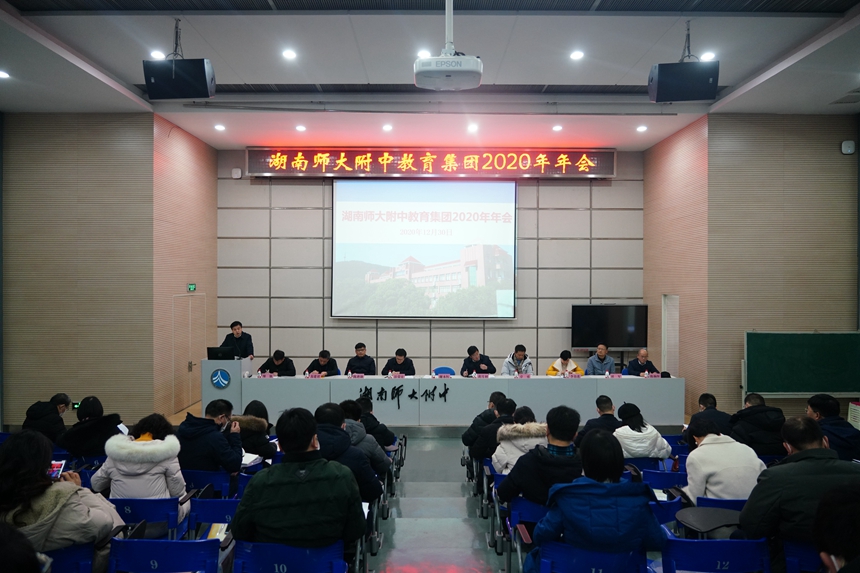 12月30日,湖南师大附中教育集团2020年年会顺利召开。湖南师大附中校长谢永红、党委书记黄月初、副校长陈迪勋、纪检书记李春莲、副校长苏建祥及本部中层以上管理干部,各集团校校领导、教务部门主任、“创新人才培养”名师工作站行政负责人和七、八、九年级组长参加会议,长沙市教育科学研究院章勇副院长、附中奥赛总顾问蔡任湘教练、湖南师大附属颐华学校欧智武副校长作为特邀专家参会指导。会议还邀请了湖南师大附属思沁中学、湖南师范大学附属滨江学校的校长、教学副校长及教务主任参加。年会由湖南师大附中党委副书记彭荣宏主持。