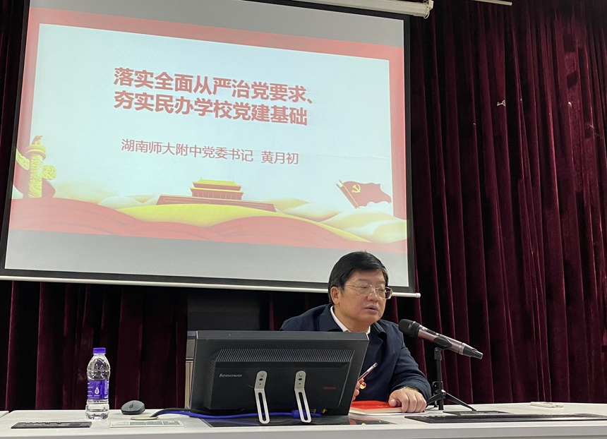 黄月初以《落实全面从严治党要求 夯实民办学校党建基础》为题,给全体支委作党建工作专题培训,他从“民办学校为何要加强党的建设”“民办学校要抓哪几个层次的党建”以及“民办学校党总支的职责和任务”三个方面娓娓道来,明确了基层党支部的“组织基础、战斗堡垒、联系纽带”等职能。他强调,党员同志们要积极带头“亮身份、讲政治、守规范、作表率、作奉献、造氛围”,发挥党员的先锋模范作用,“以党建促业务、以业务强党建”,高质量推进学校发展。