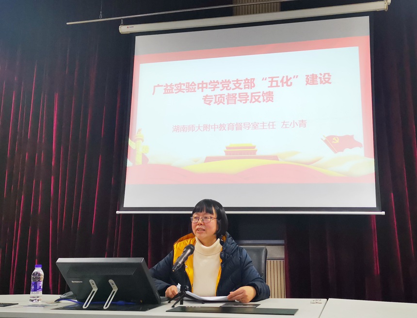 附中教育督导室主任左小青进行专项督导反馈,实事求是、公正客观地对党支部“五化”建设工作进行了评价,并结合小组督查情况汇总提出了反馈意见,对下一步工作提出了切实可行的整改意见和要求。