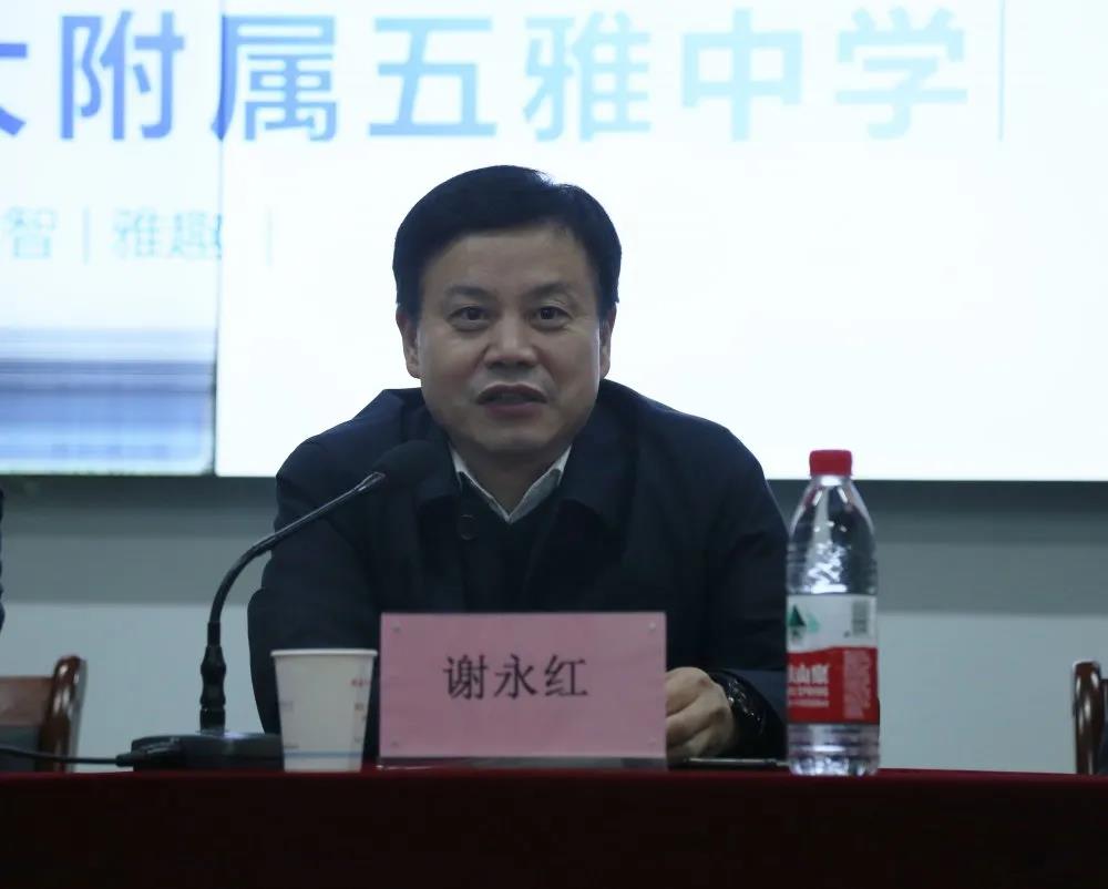 谢永红对师大五雅办学三年来的发展速度、办学规模、育人质量给予充分肯定,对以向国华校长为核心的附中派驻管理团队齐心协力干事业、辛劳付出谋发展取得的成绩表示慰问和感谢,对师大五雅进一步深化内涵发展、培育办学特色提出了新的希望和要求。