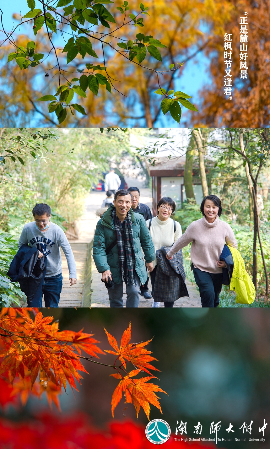 12月6日,久雨初晴,天色如洗,枫叶正红,岳麓山的空气显得格外怡人。在我校副校长、工会主席陈迪勋等校领导的带领下,全校教职工前往鸟语林合影留念,记录精彩瞬间。老师们纷至沓来,他们或三五成群,或携家带口,一路欢声笑语,登高眺远,心旷神怡。