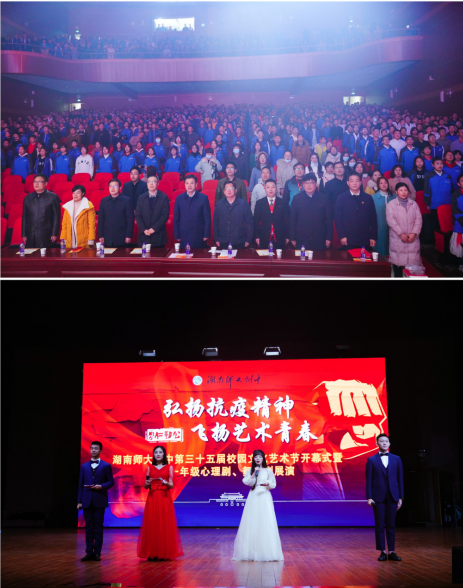 “弘扬抗疫精神,飞扬艺术青春”。12月1日下午,湖南师范大学附属中学学生活动中心,激情澎湃,青春飞扬,学校第35届校园文化艺术节之高一年级舞台剧表演比赛在这里隆重举行。