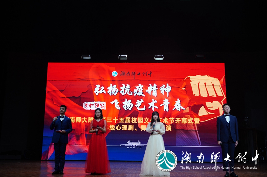 随后,谢永红充满激情地宣布:湖南师大附中“弘扬抗疫精神·飞扬艺术青春”第35届校园文化艺术节开幕!