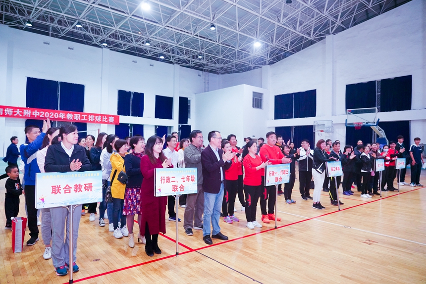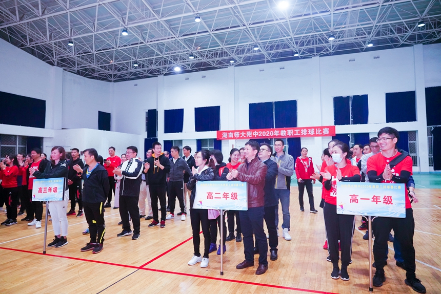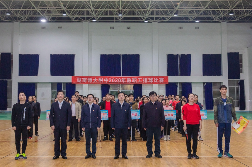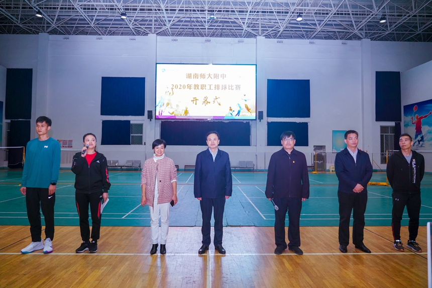 陈迪勋致开幕词,他对我校教职工排球赛的举行表示祝贺,我们正值创建全国模范之家之际,此次球赛的开展是我们创建规范、和谐、温暖、平安、创新之家的有力体现。运动员代表、教练员代表宣誓。谢永红宣布湖南师大附中2020年度教职工排球赛开幕。