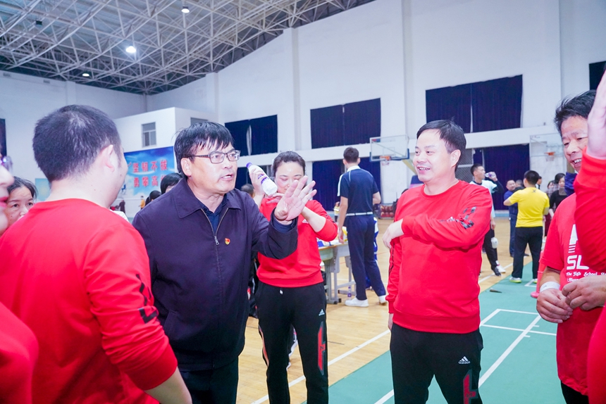 此次比赛有高三年级工会组、高二年级工会组、高一年级工会组、联合教研工会组、行政一和行政三联合工会组、行政二和七年级联合工会组等六支队伍参赛,采取单循环赛制。比赛中,校长谢永红亲自上场,现场气氛热烈。各工会小组精心组织,周到服务,本着更高、更快、更强的体育精神,团结协作,勇于拼搏,收获了快乐,增进了友谊,切磋了球技,提高了水平。