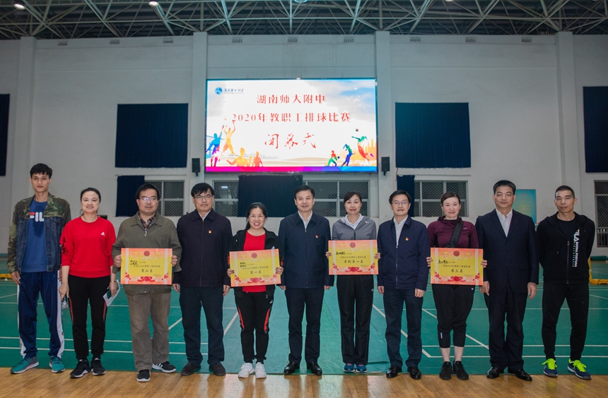 10月30日下午举行的闭幕式上,谢永红,彭荣宏,陈迪勋,苏建祥等领导为获奖队伍颁奖,并与队员们合影留念。谭伟对本次教职工排球赛进行了小结并宣布圆满闭幕。
