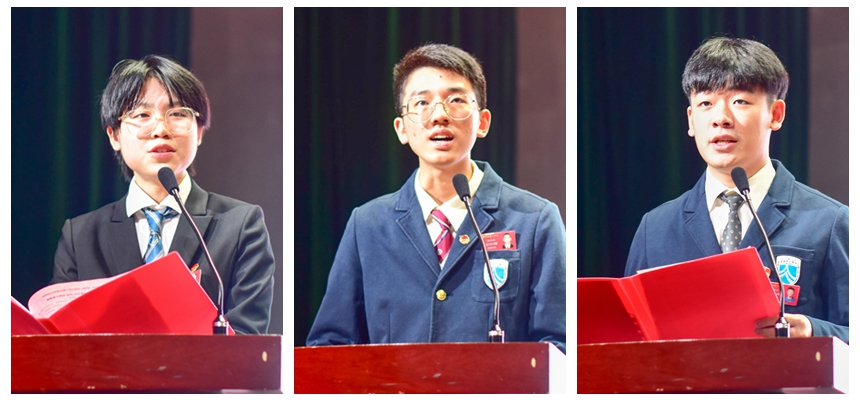 彭荣宏宣读了《关于任命教工团支部委员的决定》。德育与学生发展处主任吴卿宣布新一届校级学生干部名单。2019-2020学年度校级干部在新一届学生会主席张祖凤的带领下进行就职宣誓。他们表示将秉持“热情,自信,博学,共进”的精神,以建设研究型卓越高中为发展目标,牢记使命,砥砺前行,为打造新型校干团队不懈奋斗。