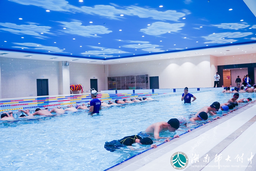 我校一直致力于推动课外体育活动课广泛开展,引导学生走出教室,积极参与阳光体育运动。为了丰富学校“体能+兴趣+特长”的课程特色,丰富“一校多品”的课程体系,学校从2018年开始规划兴建恒温游泳池,为学生开设游泳课。游泳课为学校选择性必修课,每学期开设8课时,要求每位学生至少学会游泳并掌握一种泳姿。