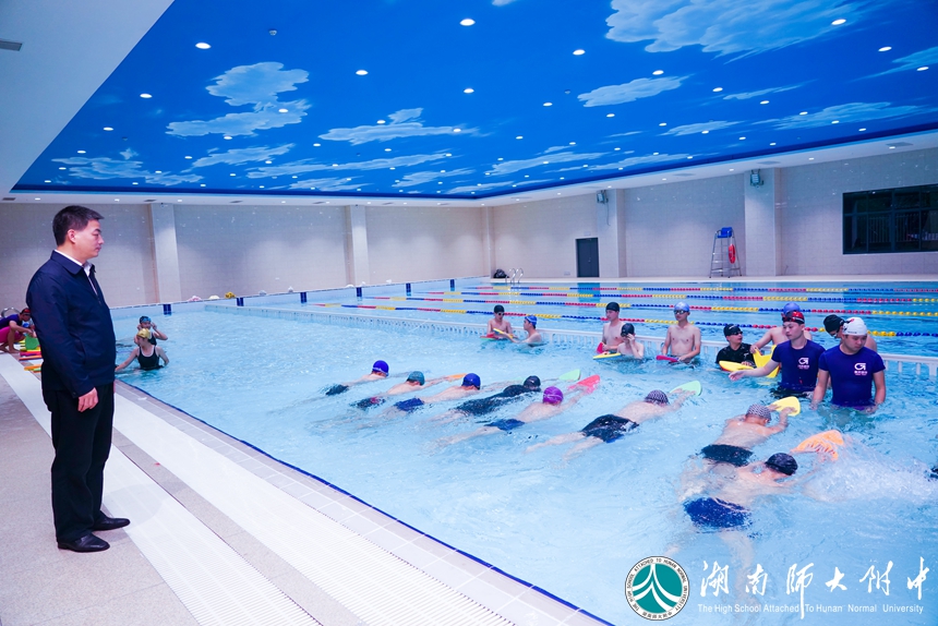 26日上午,校长谢永红、党委书记黄月初带领学校领导班子、各处室负责人和部分体育老师前往游泳馆,检查游泳课的开课准备工作。游泳馆管理人员、教练员向学校领导汇报了各项准备工作和开课计划。