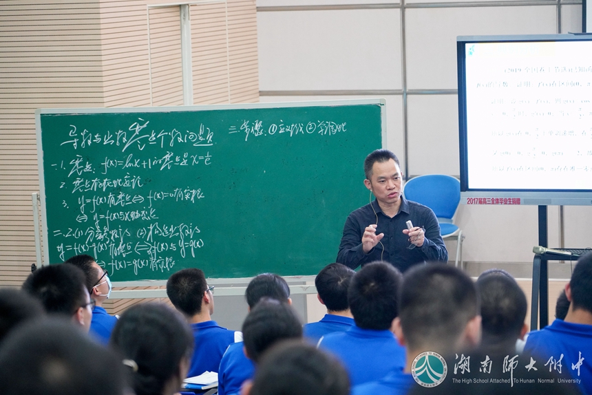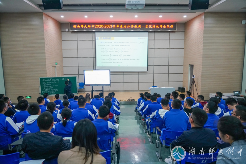 10月14日下午,我校对外开放周数学名优特示范课在学校会议厅进行,数学特级教师徐凡训老师为大家呈现了一堂精彩的高三一轮复习示范课——《导数与函数零点的个数问题(1)》。徐老师结合近几年的高考热点问题,围绕应用导数知识求解或证明函数零点个数这一复习目标,有针对性选取例题,由浅入深突破教学难点。课堂上,他鼓励学生发现、质疑、解决问题,让学生充分发表观点,多次让学生上台讲解板演,对问题的讲解精准点评,对学生及时给予鼓励肯定。徐老师注重转化思想的渗透,关注核心素养的培养,教学目标达成度高。老师们谈学习体会时说:徐老师严谨谦逊的治学态度、扎实深厚的专业功底、流畅递进的教学设计、科学有序的教学组织、系统全面的思维训练、平等和谐的师生关系等方方面面都值得大家学习借鉴。