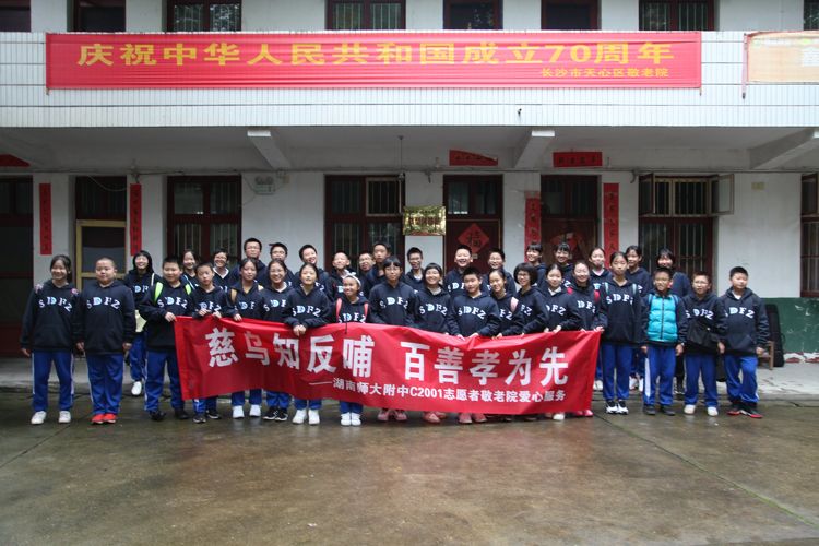 为弘扬尊老,敬老,爱老的传统美德,2020年10月6日,湖南师大附中C2001班30多位同学一起走进天心区大托镇敬老院奉献爱心,用实际行动给孤寡老人送去温暖。