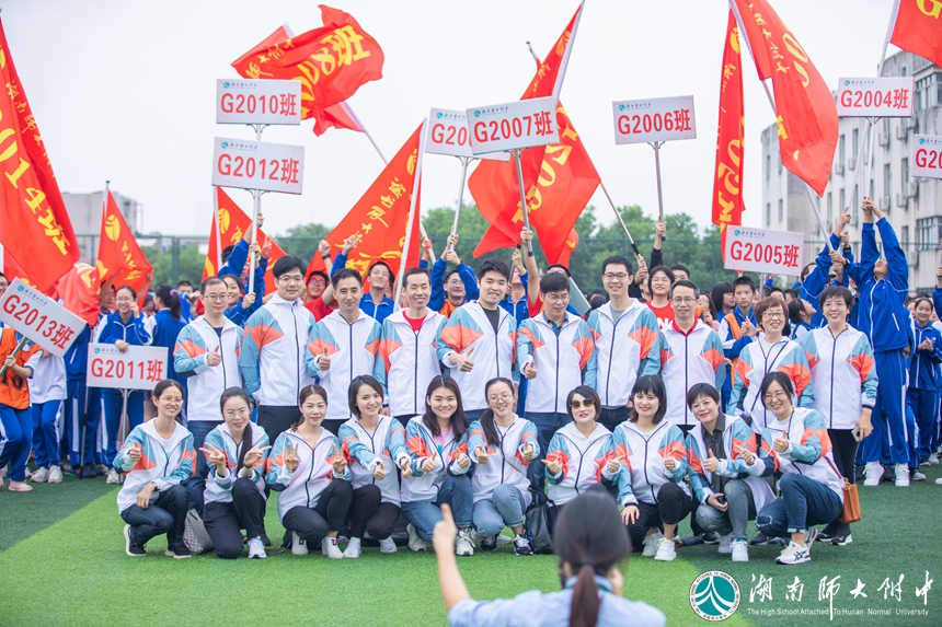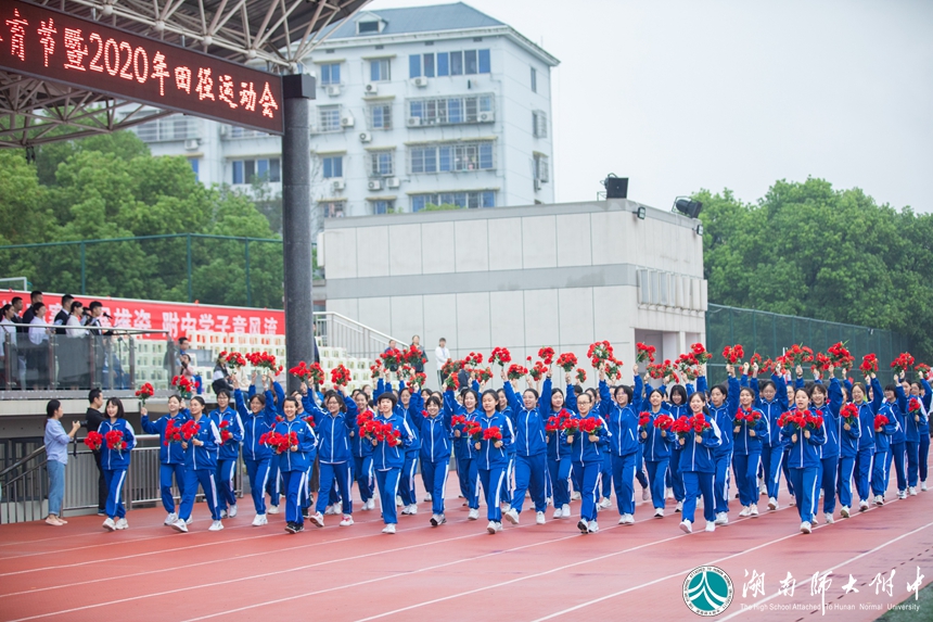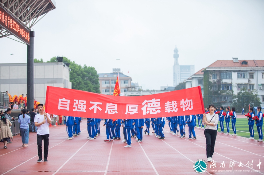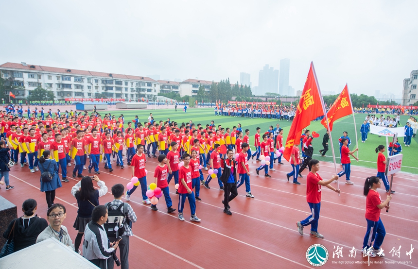 恰同学少年,风华正茂。伴随着激昂的乐曲,各年级代表队、各学生方阵依次入场。别出心裁的班级秀让现场的气氛瞬间热烈起来。“德、智、体、美、劳”全面发展是他们的人生目标——附中学子不光用知识武装头脑,也用锻炼强健体魄!