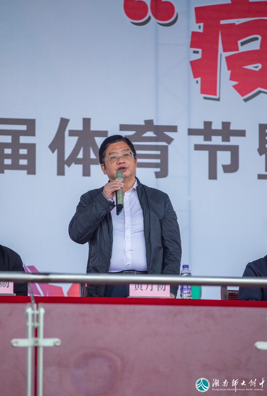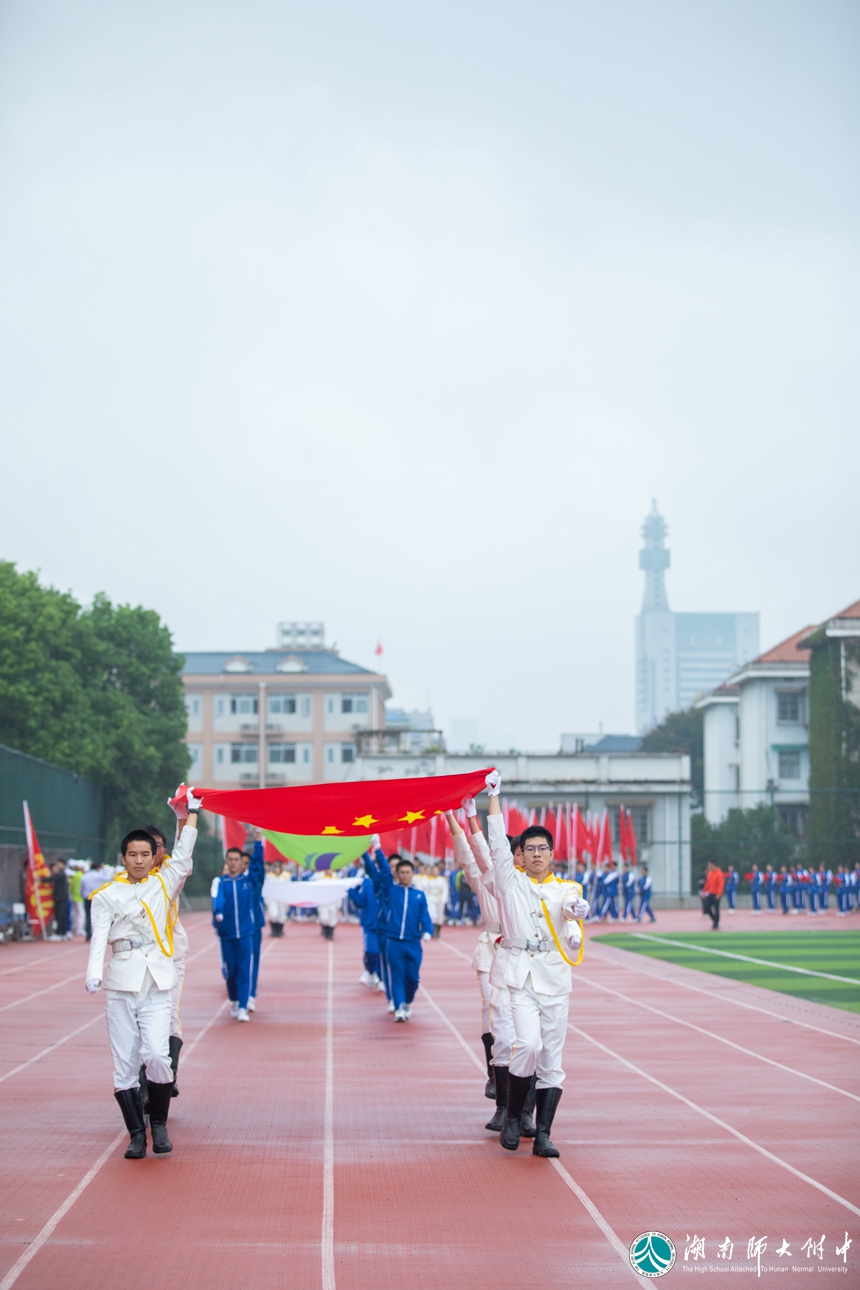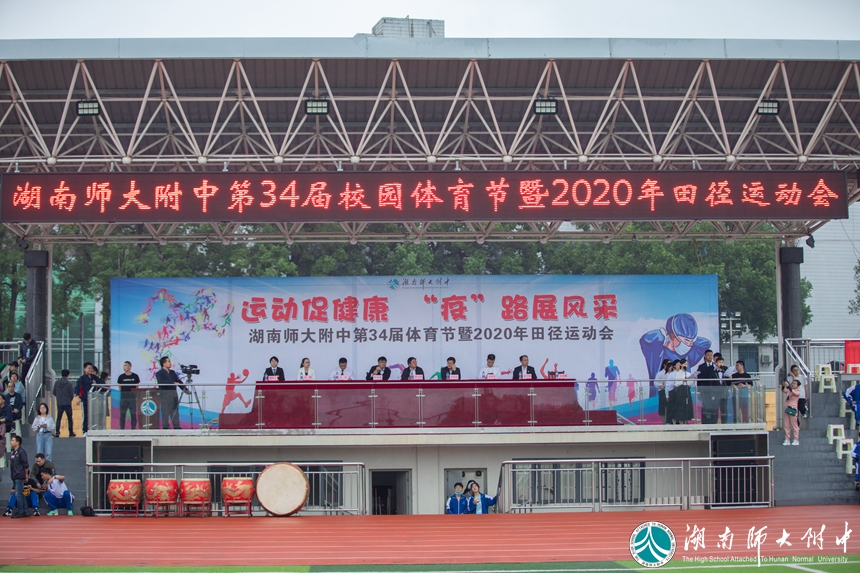 9月29日上午,以“运动促健康,‘疫’路展风采”为主题的学校第34届校园体育节暨田径运动会开幕式在田径场隆重举行。校党委书记黄月初、副书记彭荣宏、副校长兼工会主席陈迪勋、副校长苏建祥、挂职副校长杜军、课程与教学处主任黄宇鸿、德育与学生处主任吴卿、总裁判长佘杰明和校学生会主席刘叶子在主席台就坐。仪式由校学生副主席张祖凤同学主持。参加开幕式的全校师生一个个精神饱满、神采飞扬,彰显着师大附中人热爱生活、热爱运动的青春风貌,湿冷的秋雨丝毫没有冷却大家的运动热情。