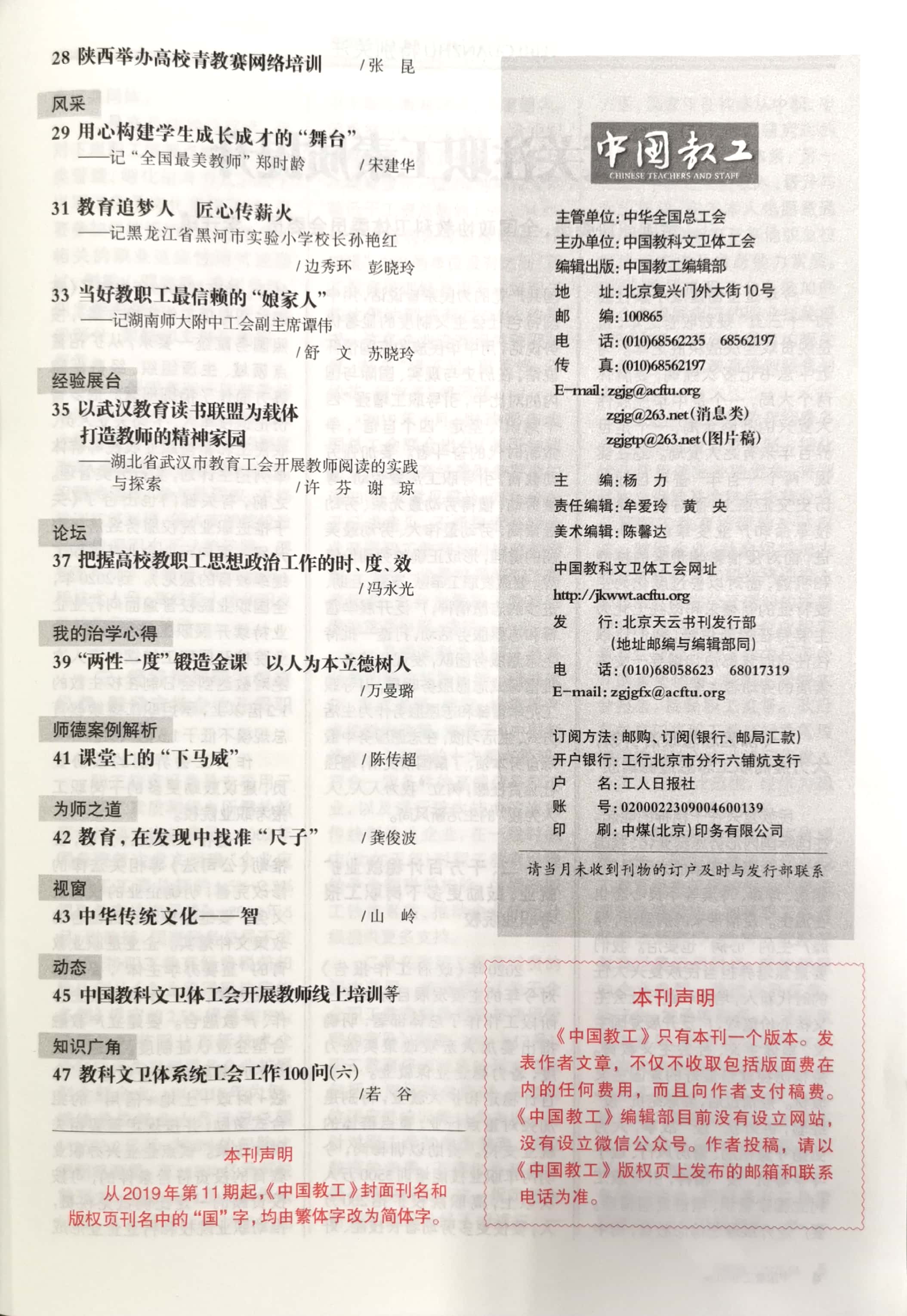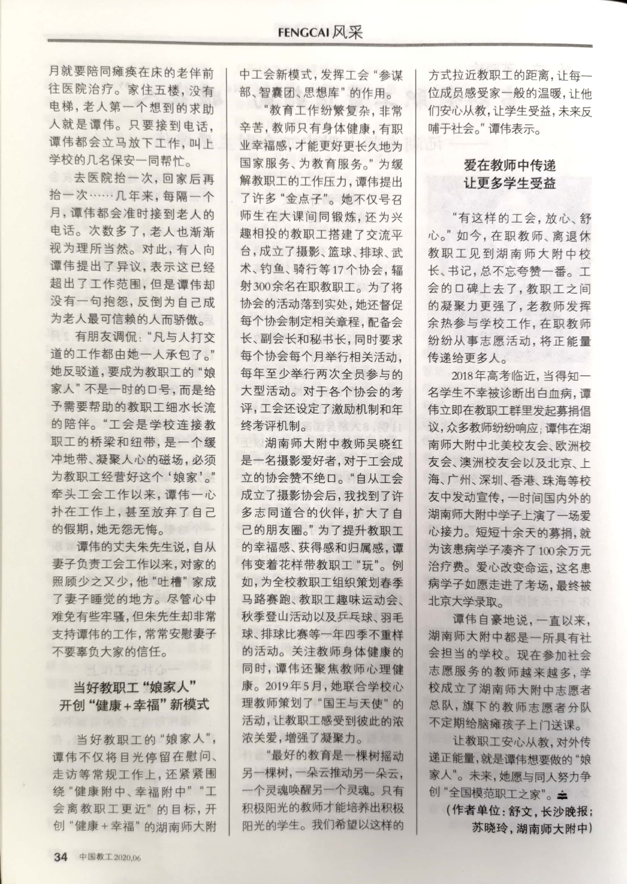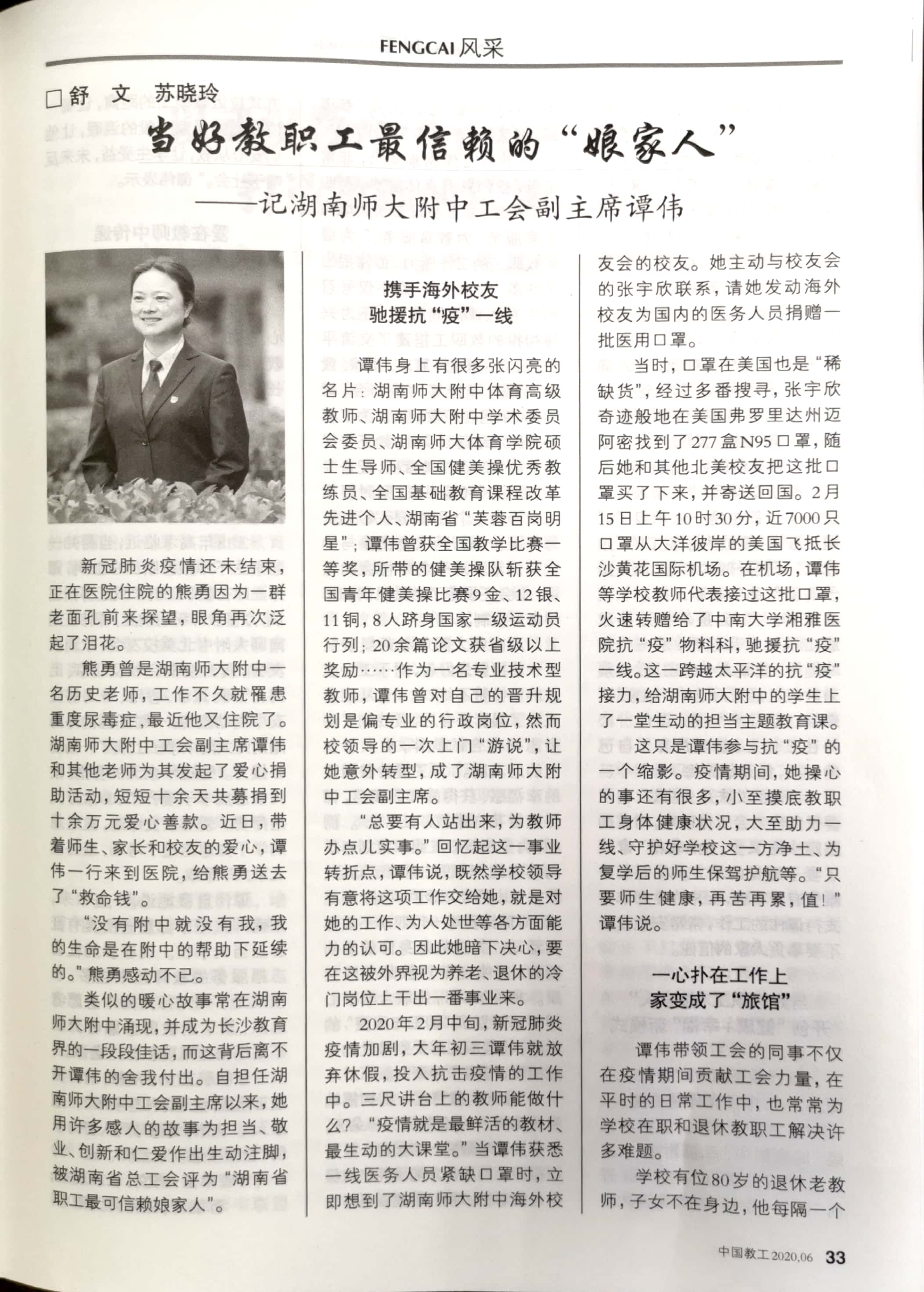 《中国教工》2020年第6期以“当好教职工最信赖的'娘家人'”为题,报道了我校工会副主席谭伟的优秀事迹。全文转载如下: