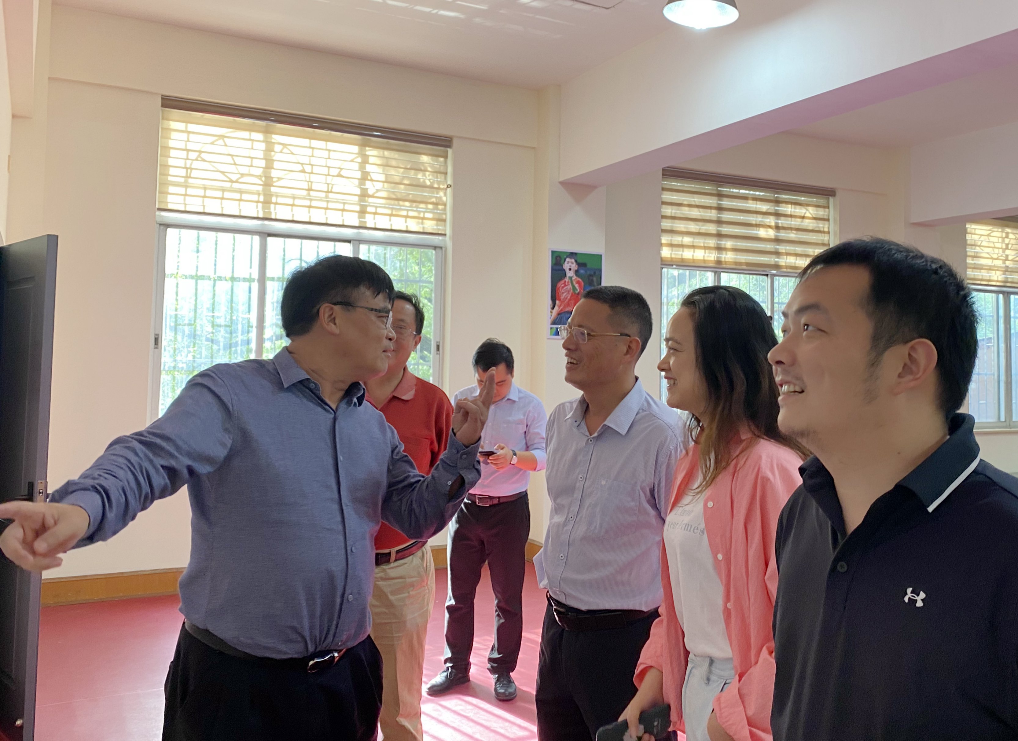 龚向明一行查看了改造一新的职工之家和“附二代”母婴中心,对工会暖心的服务工作和取得的成绩给予了高度评价,尤其看到母婴中心的温馨布置、健身房配置的淋浴房时,他们由衷地表示附中的老师们很幸福,工会工作做得很贴心,并预祝我校顺利完成全国模范职工之家的创建工作。